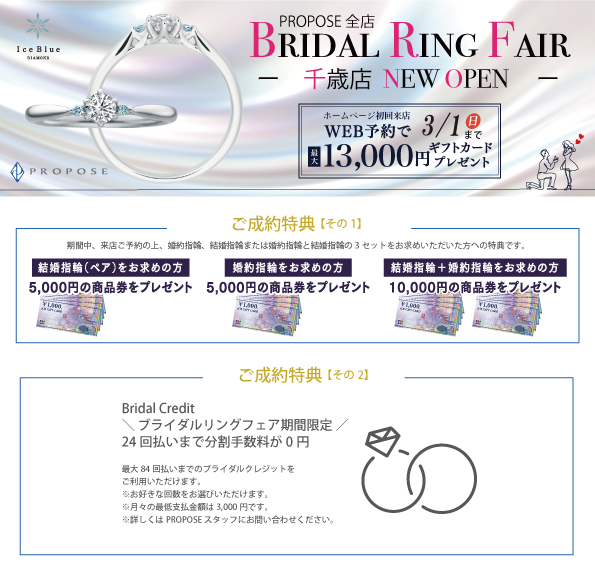 ※PROPOSEにご来店で、アンケート記入とブライダルリングをご試着いただいた方に限ります。