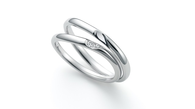 2本重ねて浮かび上がるハート。 シンプルラインの中に 二人の誓いの気持ちを表現したリング。