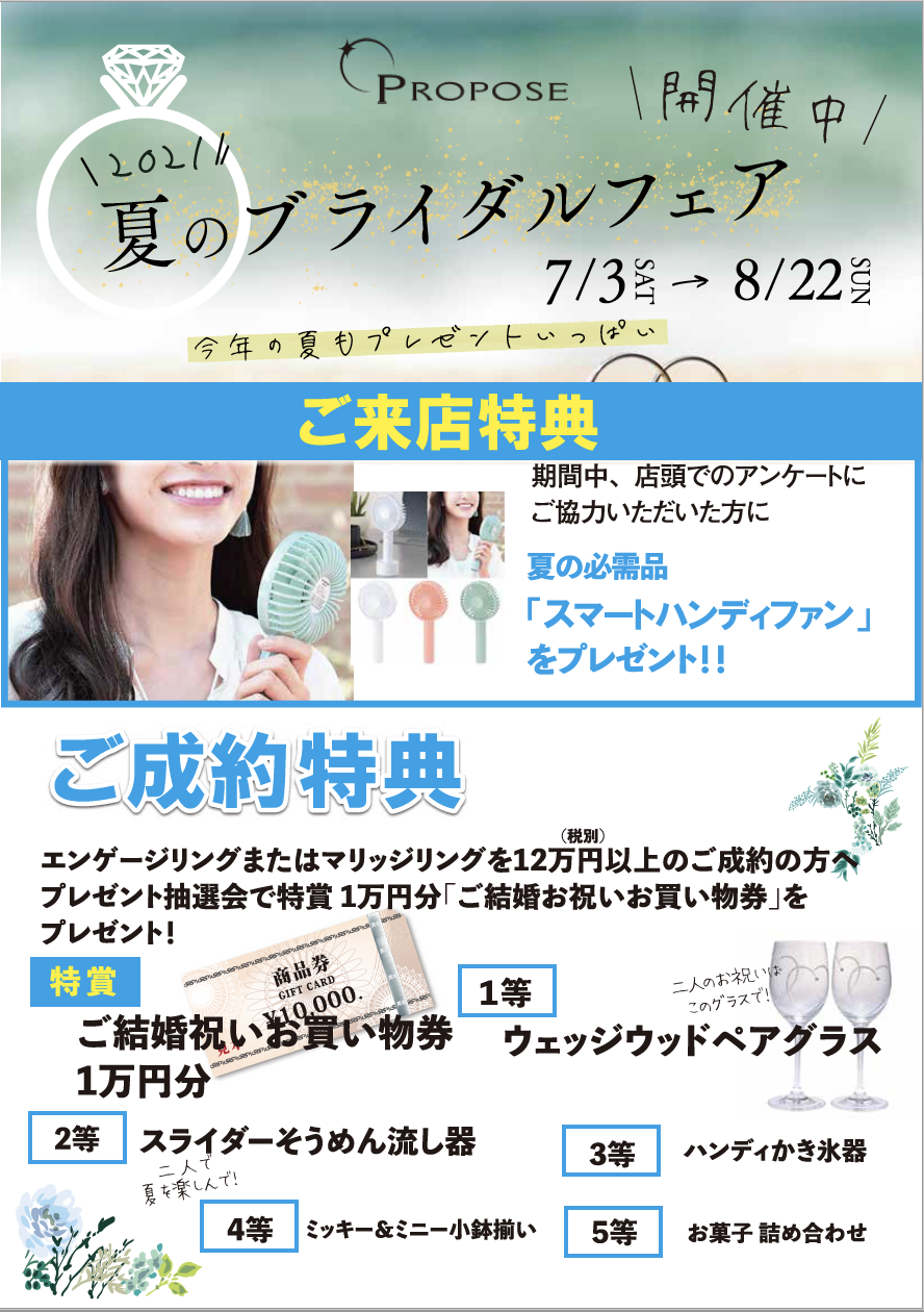 期間中、エンゲージリングまたはマリッジリングを 12万円(税別)以上のご成約の方へ