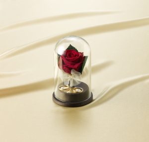 エンゲージリングには「魔法の薔薇」をイメージしたルビーをセッティングいたしました