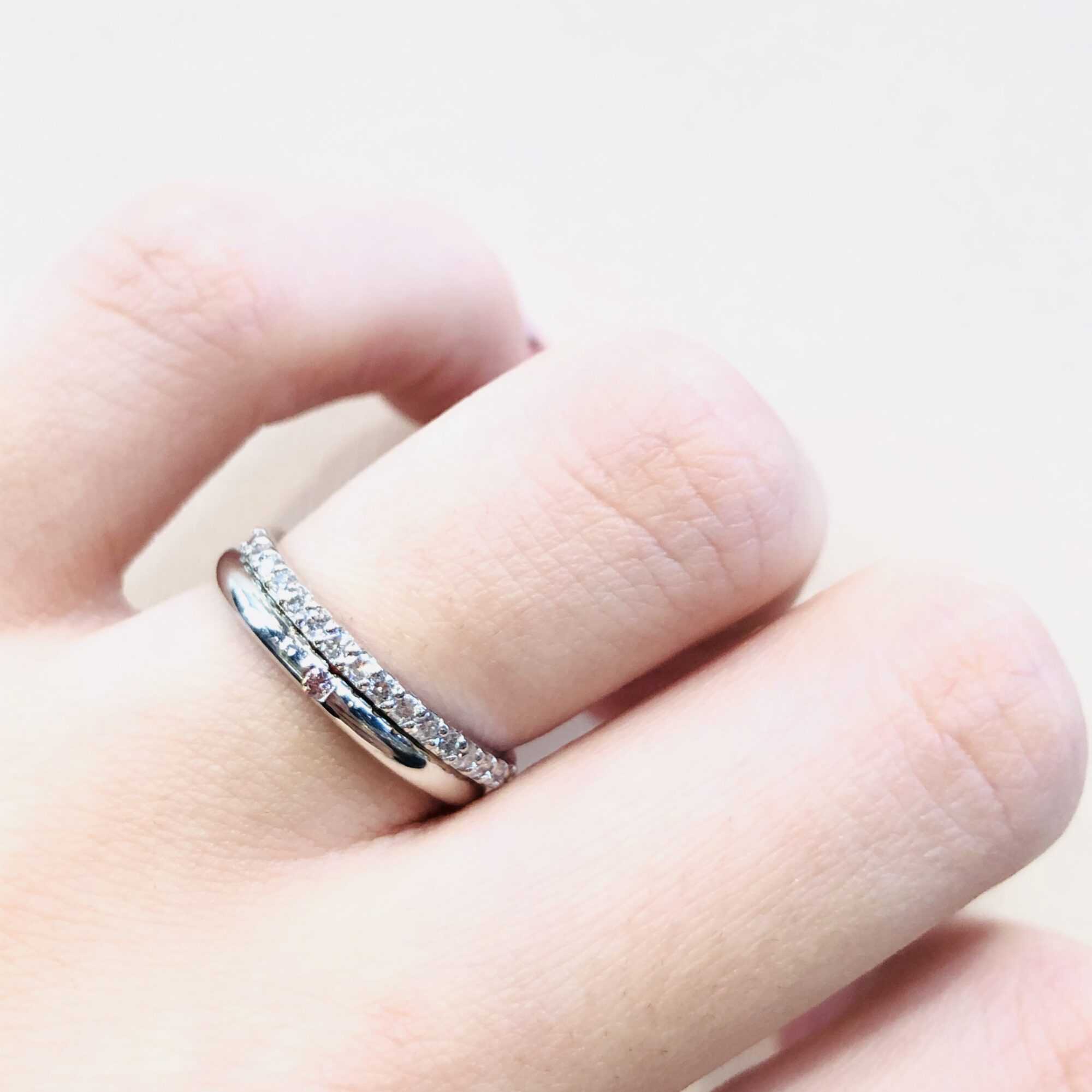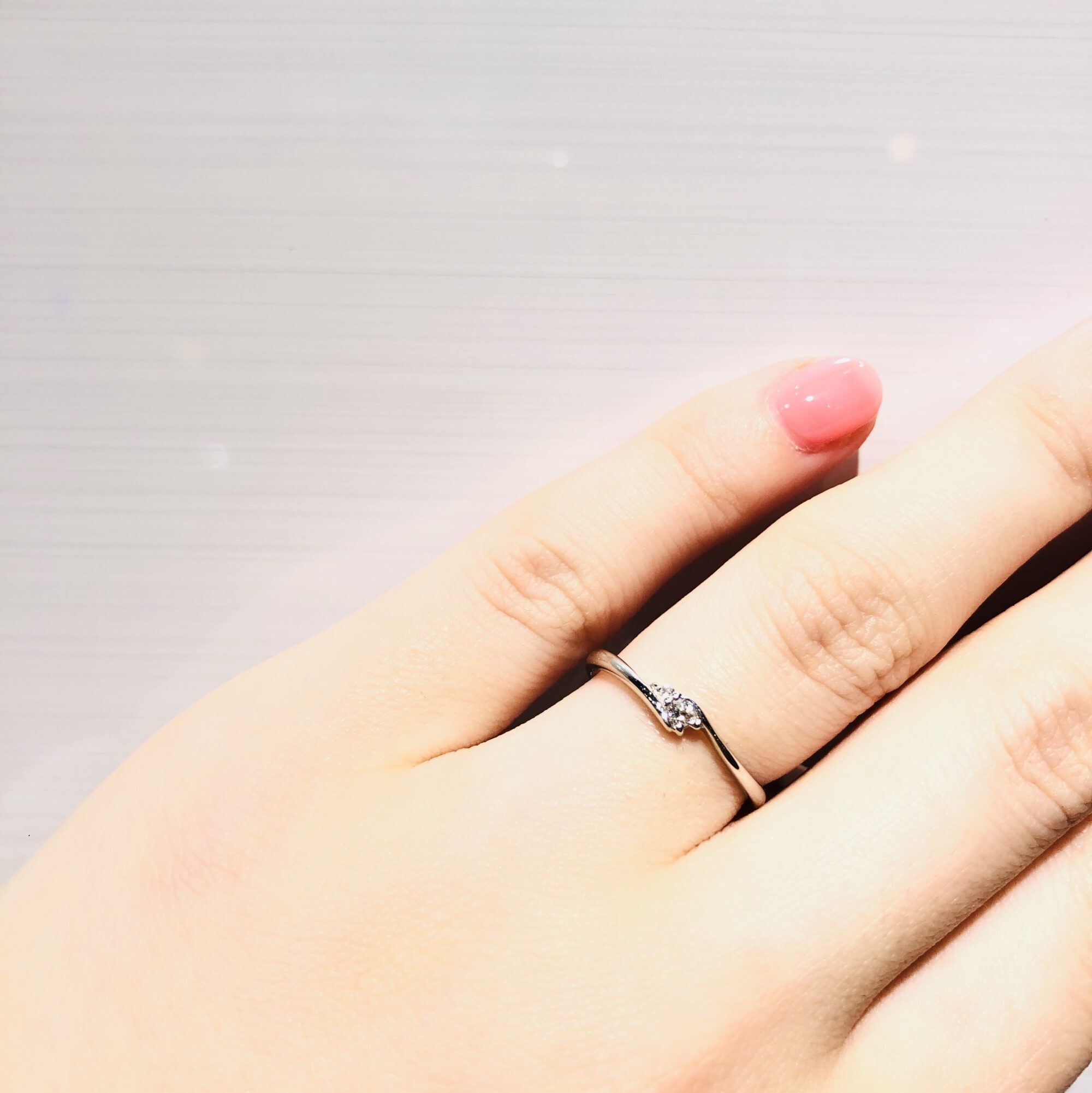 結婚指輪との重ね付けもシンプルですっきりしますよ♪