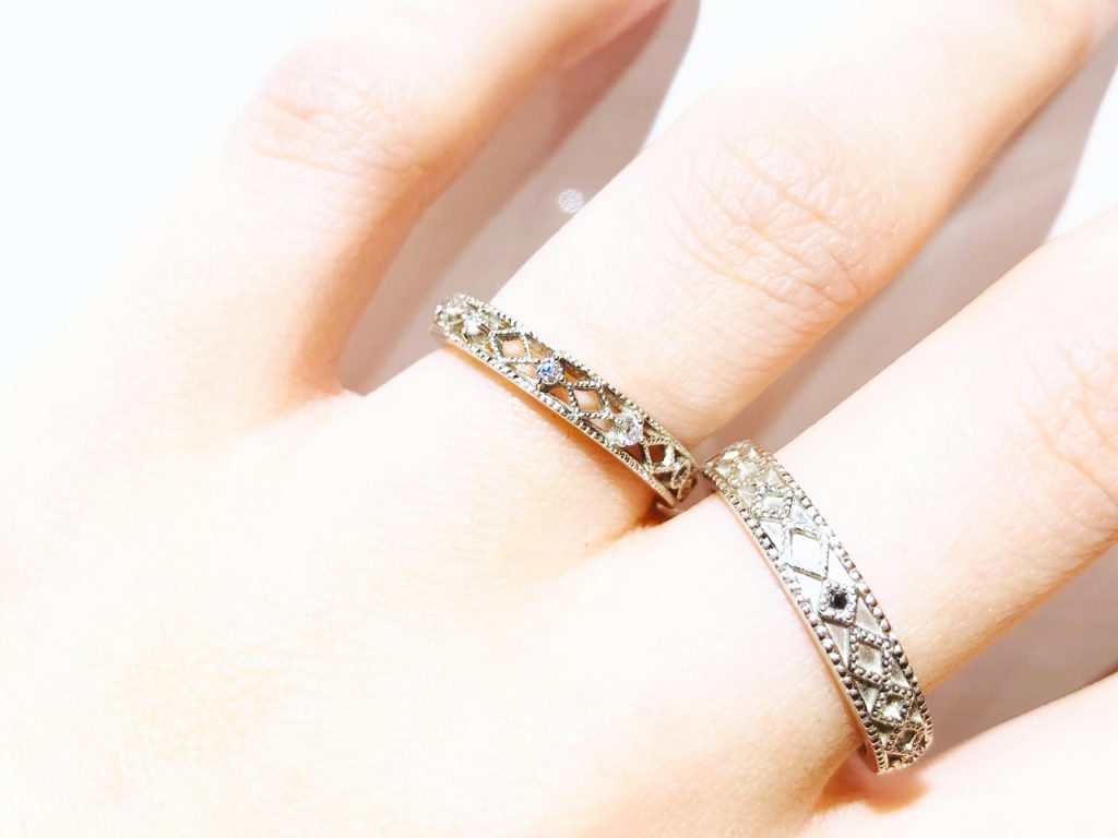 女性用にはダイヤモンドが入るので華やかな印象になりますよ☆