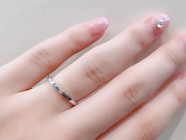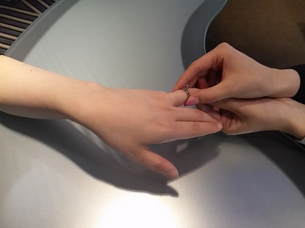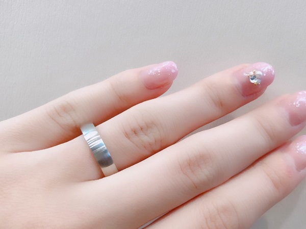 札幌を中心に旭川・苫小牧・函館に店を構える 「結婚指輪・婚約指輪の専門店」 PROPOSE(プロポーズ)です。 カフェリングをはじめ 多数のブランドをご用意しております。 指輪に関する選び方、下見、デザイン、 価格の相談も承っております。 お気軽にお問い合わせください。 こんにちは♪ PROPOSE(プロポーズ)札幌paseo(パセオ)店です。 皆さまはご自分の指のサイズはご存知ですか? 女性はともかく 男性でご自分の指のサイズを知っている方は 少ないかもしれませんね(´-ω-`) 当店でも 「サイズだけ測ってください」 とご来店されるお客様がいらっしゃいます。 そのほとんどは女性ですが 「どちらのお指でお測りしますか?」と聞くと 「左手の薬指で…」と 恥ずかしそうにおっしゃいます。 きっと彼から「指のサイズ測ってきて」と リクエストがあったんでしょうね( *´艸`)💕 男性がプロポーズをするにあたって 彼女の指のサイズがわからないということは プロポーズ前の悩みのタネでもあります。 先程の「指のサイズ測ってきて」という言葉で女性は ”プロポーズされるんだ💕”と察してしまうでしょう。 でもそれがいつなのか? どんな婚約指輪(エンゲージリング)なのか? 彼女がワクワクして待っている間に 男性は聞き出したサイズを元に指輪選びが出来ます。 ちゃんとサプライズの要素は残せるというわけです✨ このように サプライズプロポーズを計画中の方にとっては 事前にサイズの目安を知っておくのは良いことでもあります。 ただあくまでも目安としてお考えください(`・ω・´) 実は指輪を選ぶ前に ご自分のサイズを知ろうとするのは要注意! 特に結婚指輪(マリッジリング)をお探しの方は 婚約指輪と違い、 サプライズでご用意するということは少ないので 最初にサイズを知ることは 注意が必要でもあります(; ・`д・´) なぜ注意しなければいけないのか? 前置きが長くなりましたが 本日のブログは 《サイズは着ける指輪によって変わる》 ということをお話させていただきます(((( ノ´3`)ノ 指輪によってサイズが変わる要因は 大まかに分けると3つ。 まず1つ目の要因は ■指輪の幅によって感じ方が違う 結婚指輪といっても太さの幅は 1.5㎜幅の華奢なものから 6mm幅のボリュームのあるものまで様々。 ↑1.5mm幅を着けた状態 ↑4mm幅を着けた状態 それだけ幅が変われば 指に着けているときの締めつけ感・密着感が全然違います。 同じサイズを着けても 細い指輪はゆるく、太い指輪はきつく感じやすいです。 そして2つ目が ■指輪の内側の丸みによって感じ方が違う 結婚指輪というのは より心地よくするために 指輪の内側を丸く削ることで接する面を減らし、 圧迫感が少しでも無くなるように作られています。 特に内側に丸みのある形状を ”内甲丸”と言いますが 丸みがあればあるほどスルッと指に着けられるので ゆるいように感じます。 最後が ■ブランドによってサイズの測り方が変わる 当店のブライダルリングブランドの中で 唯一海外のブランドでもある【MEISTER(マイスター)】はスイスメイドということもあり 日本のゲージリング(サイズを測るリング)とは 全く違うものでサイズをお測りします。 日本サイズとは少し誤差が出るので 必ずお店でマイスター専用ゲージリングを 使わなければいけません。 それを考えると 『インターネットで指輪を購入する』 というのはとてもキケン!(; ・`д・´) サイトにもよりますが 購入後に返品・交換が出来ないショップも多いからです。 例えば普段細い指輪を着けている方が ネットで下のお写真のような 幅広のリングを注文しようとして 同じサイズでオーダーすると きつくて入らない可能性もあります。 実物を見て 実際にはめて試すことが出来ないのも サイズだけではなく、 『着け心地がわからない』 という問題が出てきます(;´Д`) 普段指輪を着け慣れない男性にとっては 一生身に着ける結婚指輪の着け心地の良さは とても大切です! 内側がとぅるんと滑らかなことによって 着け外しもスムーズで 着けていても違和感がありません。 男性こそ絶対に結婚指輪の試着は必須ですよ! ちなみに アクセサリーショップなどで販売しているファッションリングは サイズを奇数号でご用意していることがほとんど。 女性用で大体7号・9号・11号のサイズ展開ですね(´・ω・) (結婚指輪はもっと広いサイズ展開で 1号よりももっと細かい0.5号刻みでお作り出来ます。) サイズに2号も開きがあると 仮に10号のサイズの方は 9号だときついし、11号だとゆるいという状態になります。 そうすると、皆さんきつめよりもゆるいサイズの方を選びます。 特に女性は指輪を着けた状態で お肉が乗ってしまうことを気にする方が多いので もっとゆるいサイズを着けて さらにそれが自分のサイズだと 思い込んでしまっている場合もあります。 サイズを測らずに 普段着けているファッションリングのサイズが 正しいと思うのもキケンです(; ・`д・´) 一番良いのは 実店舗でプロのスタッ