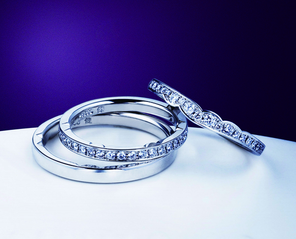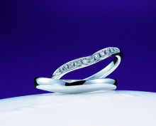 細く連なるメレダイアモンドは、可憐な女性の指によく映えます。