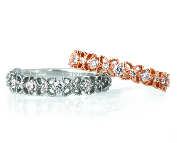 咲き誇る薔薇、そのうっとりするような香りがどこまでも広がる情景を真っすぐに連なるメレダイヤモンドと上品な輝きで表現しています。