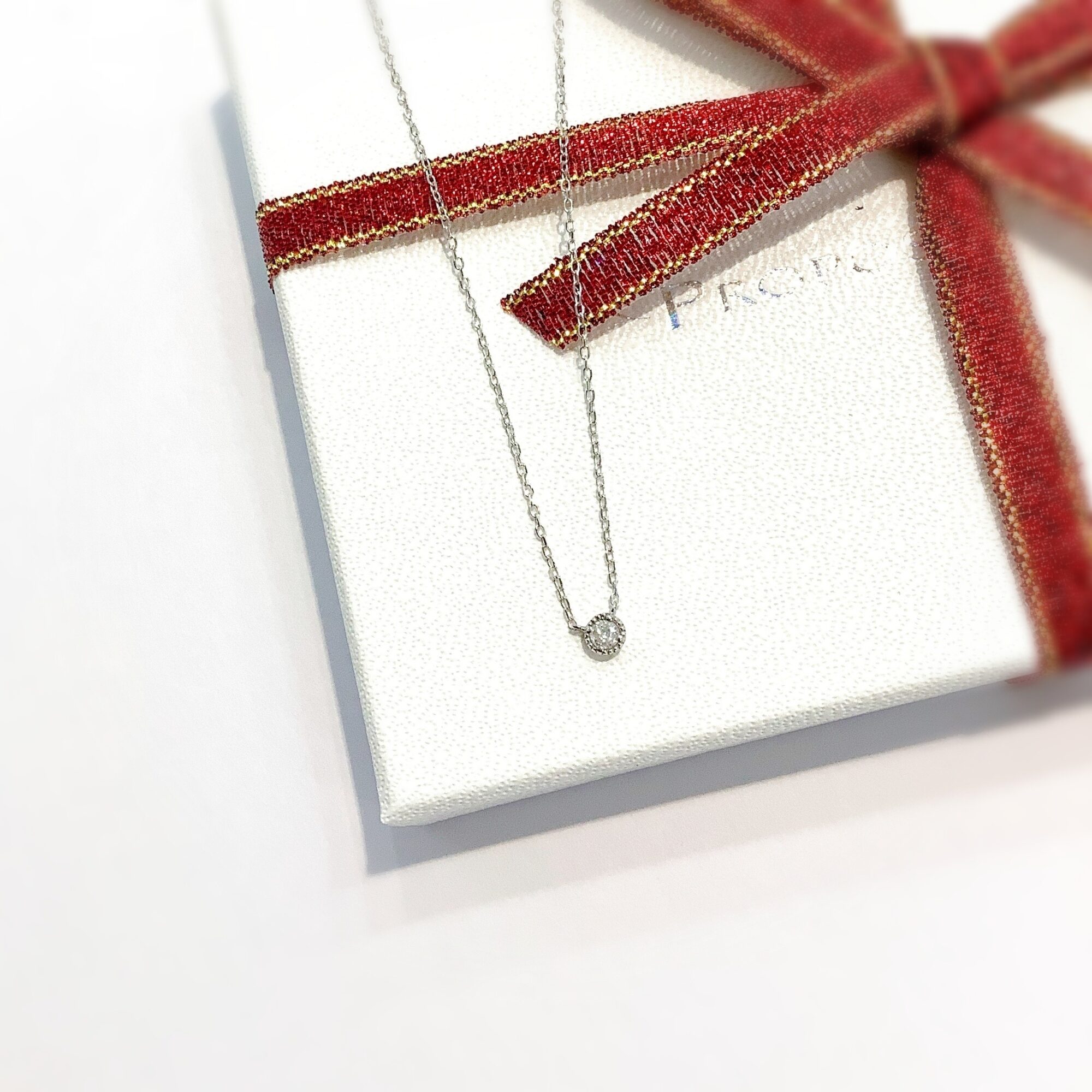 婚約指輪とおそろいのダイヤモンドネックレスや