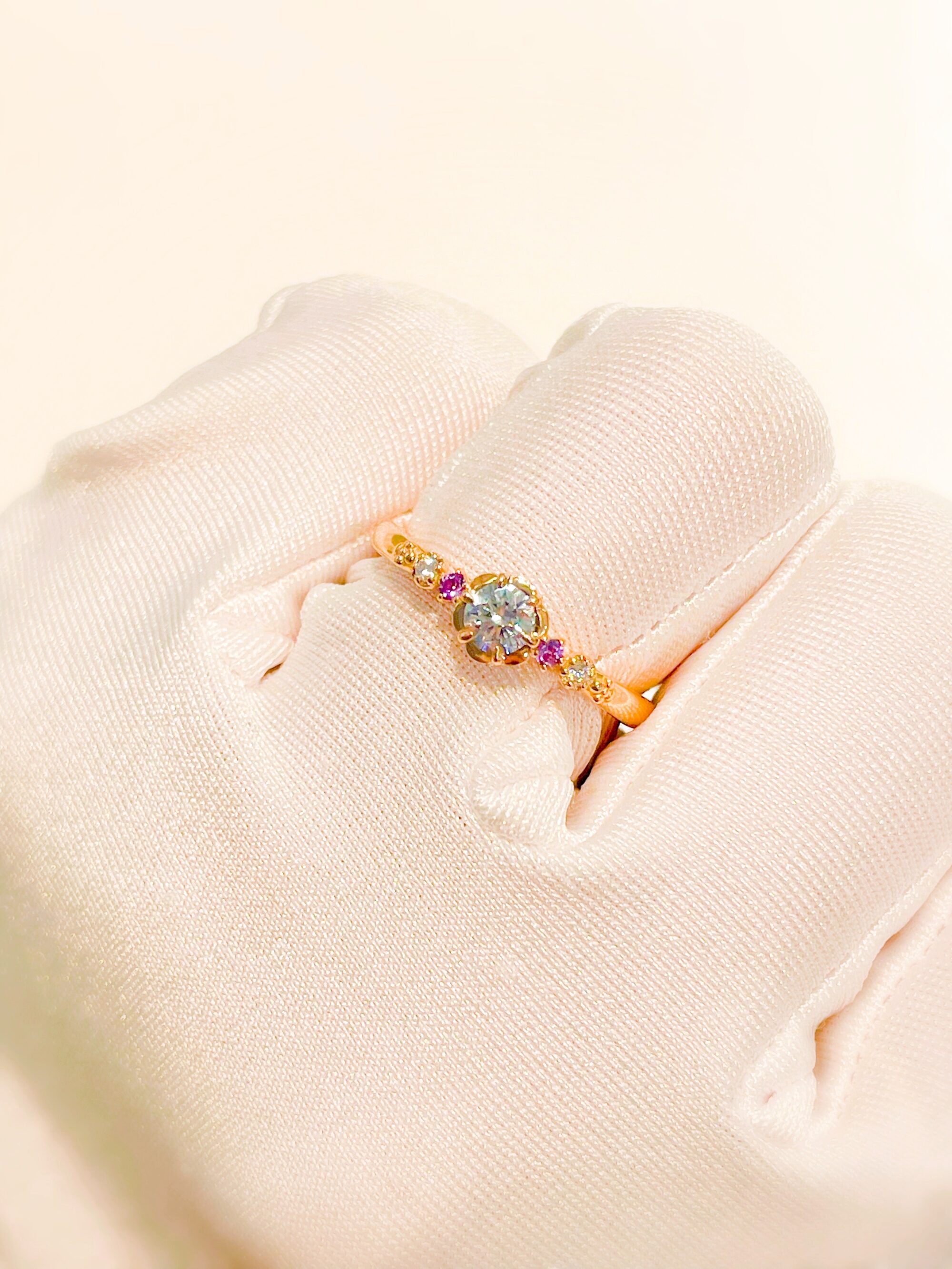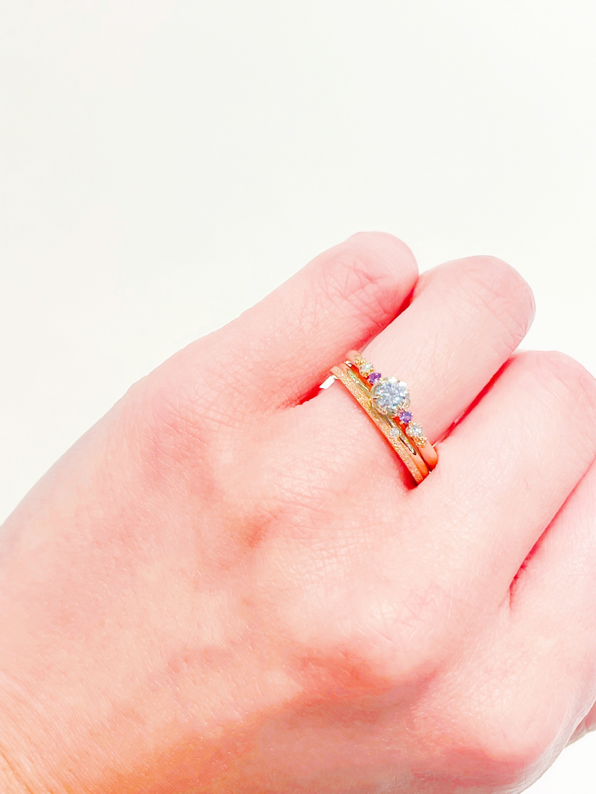 パープルのアメジストでラプンツェルを表現した、特別なエンゲージリングです(^^♪