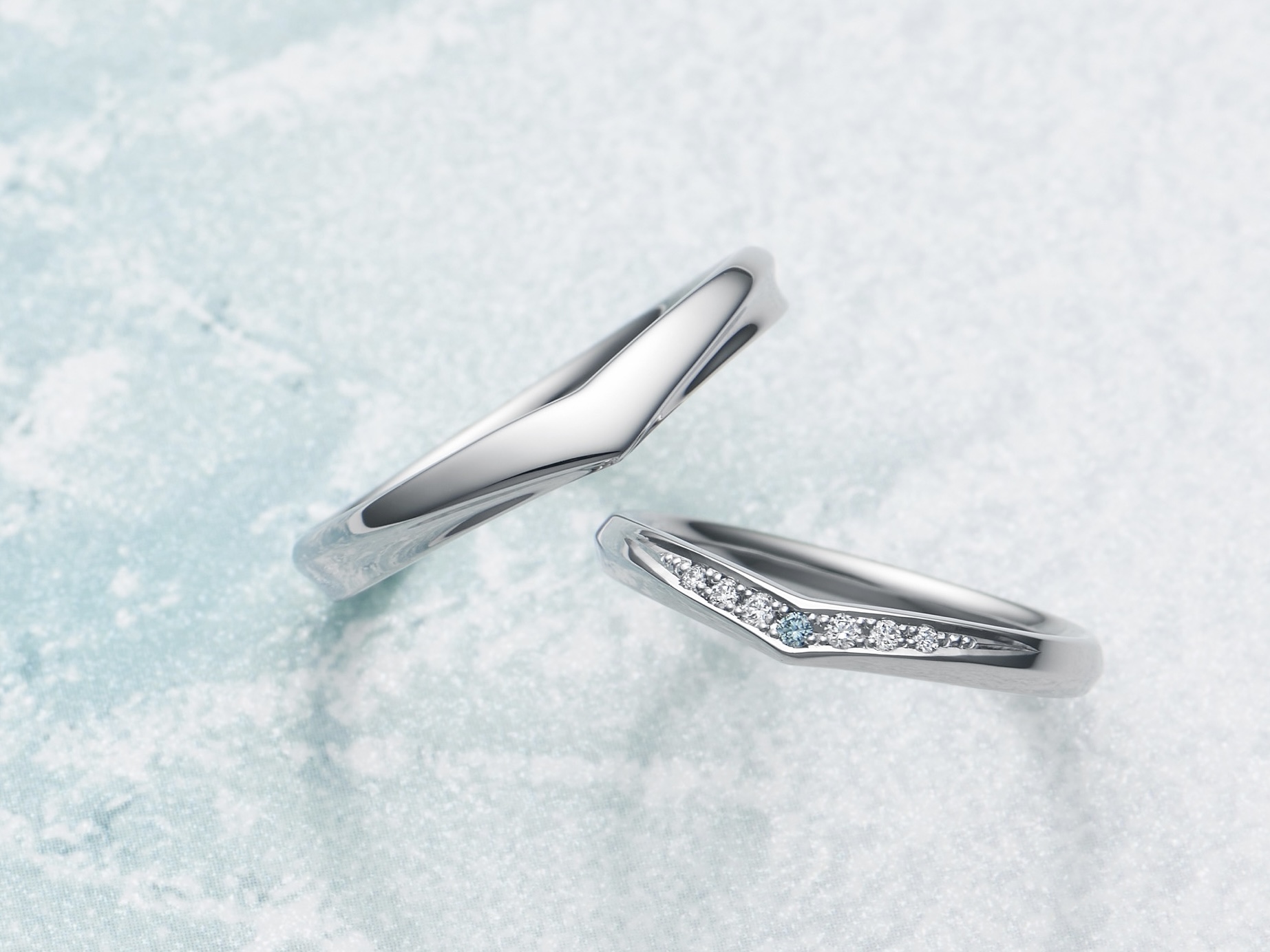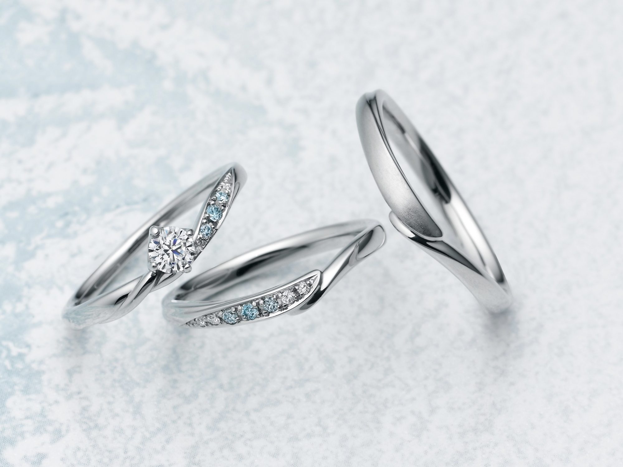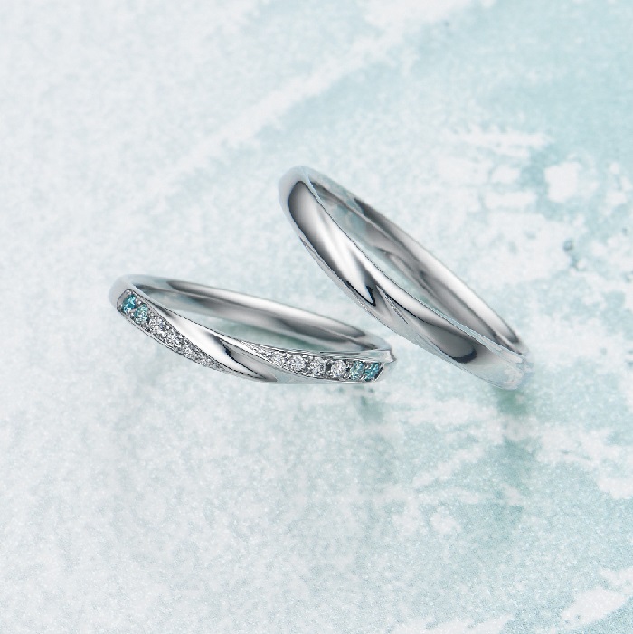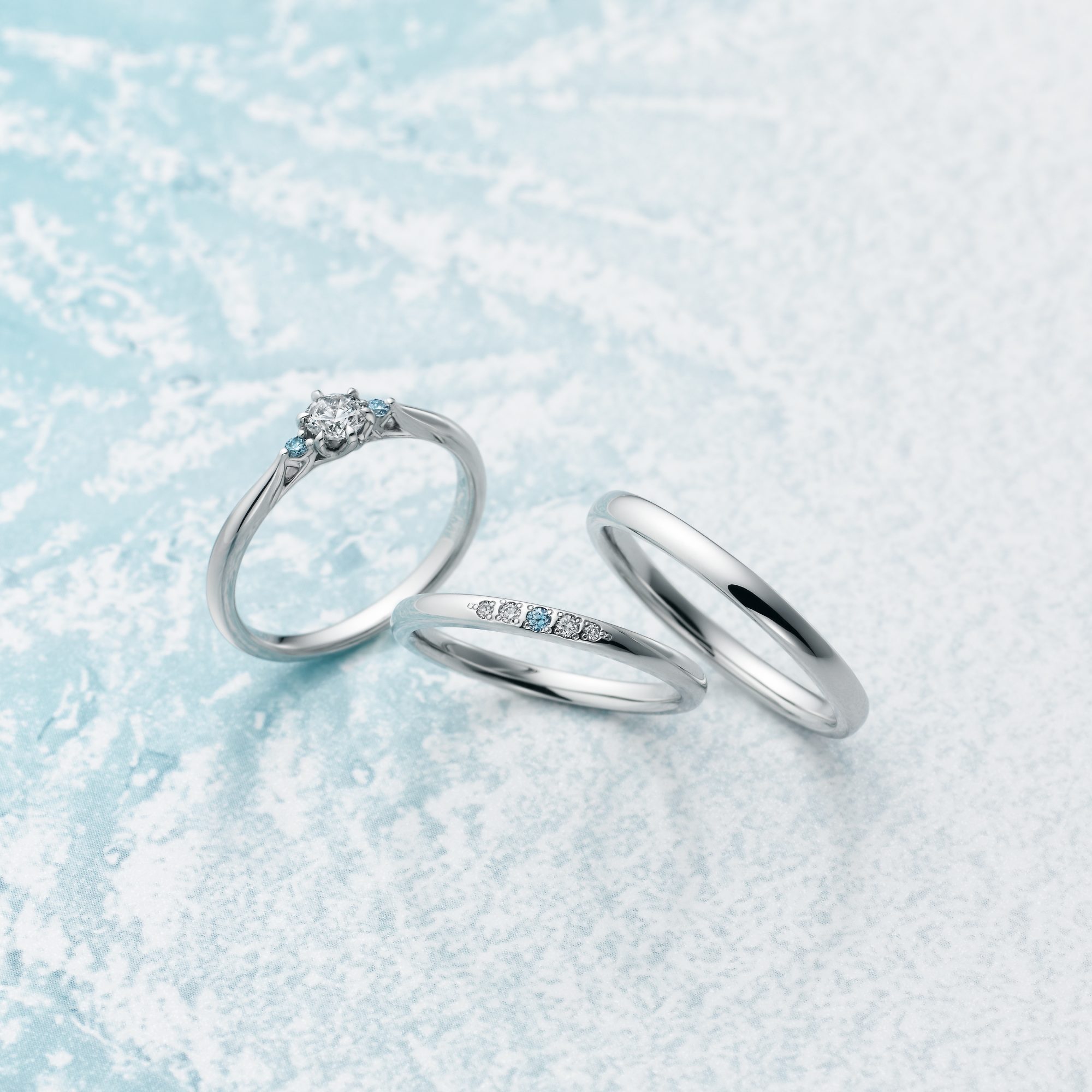 マリッジリングのアイスブルーダイヤモンドは湖上に咲く