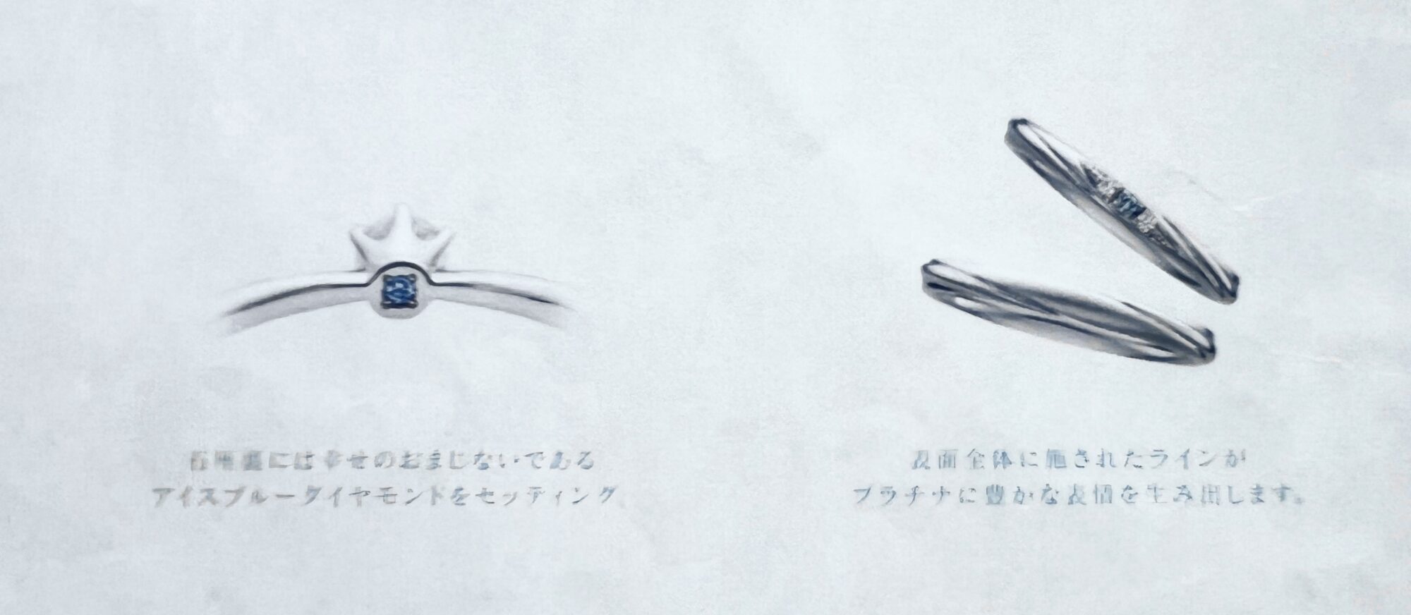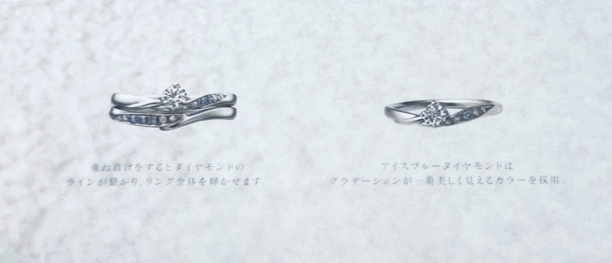 エンゲージリングの特徴:アイスブルーダイヤモンドはグラデーションが一番美しく見えるカラーを採用。