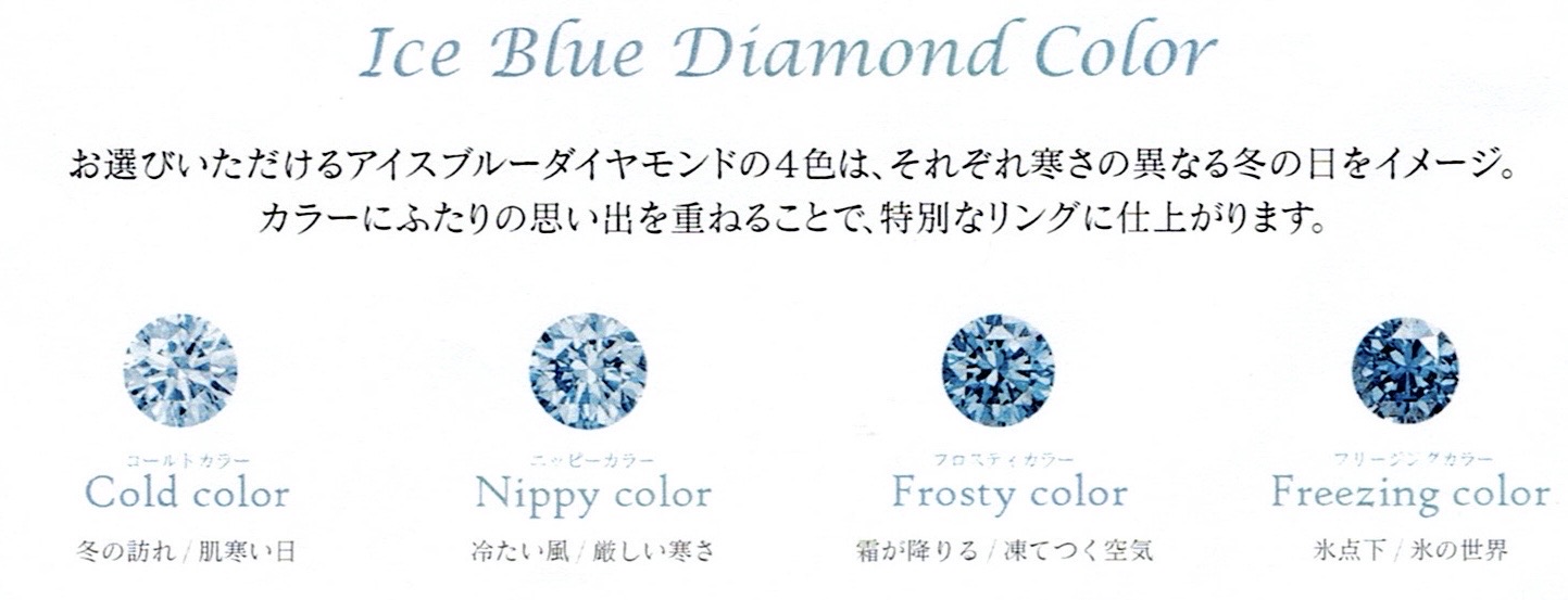お選びいただけるアイスブルーダイヤモンドの4色は、それぞれ寒さの異なる冬の日をイメージ。