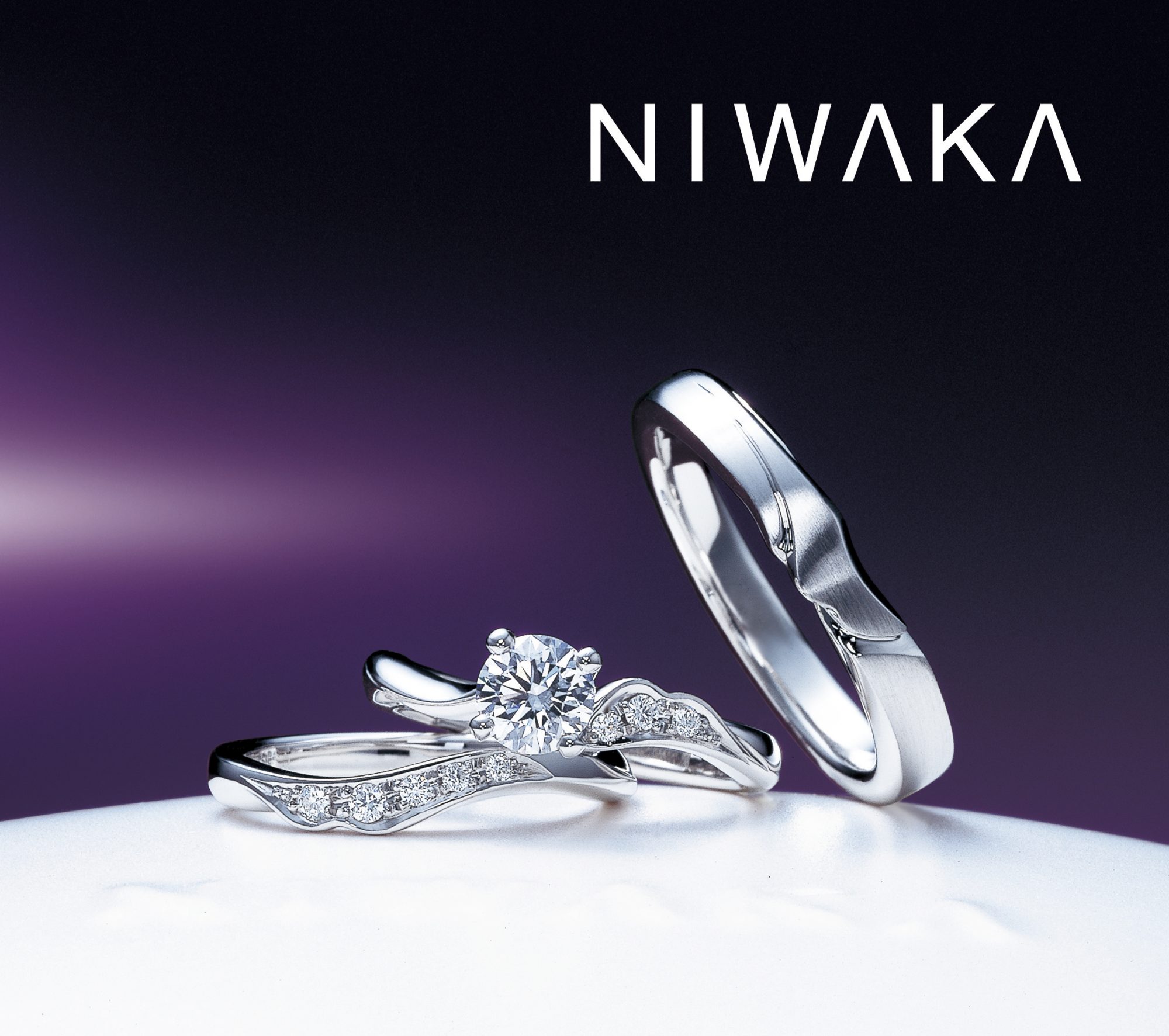 リングの緩やかなカーブは未来へと続く川の流れを、ダイヤモンドは水面の輝きを表現。清らかな水の音のように穏やかな人生を歩むふたりをイメージしています。