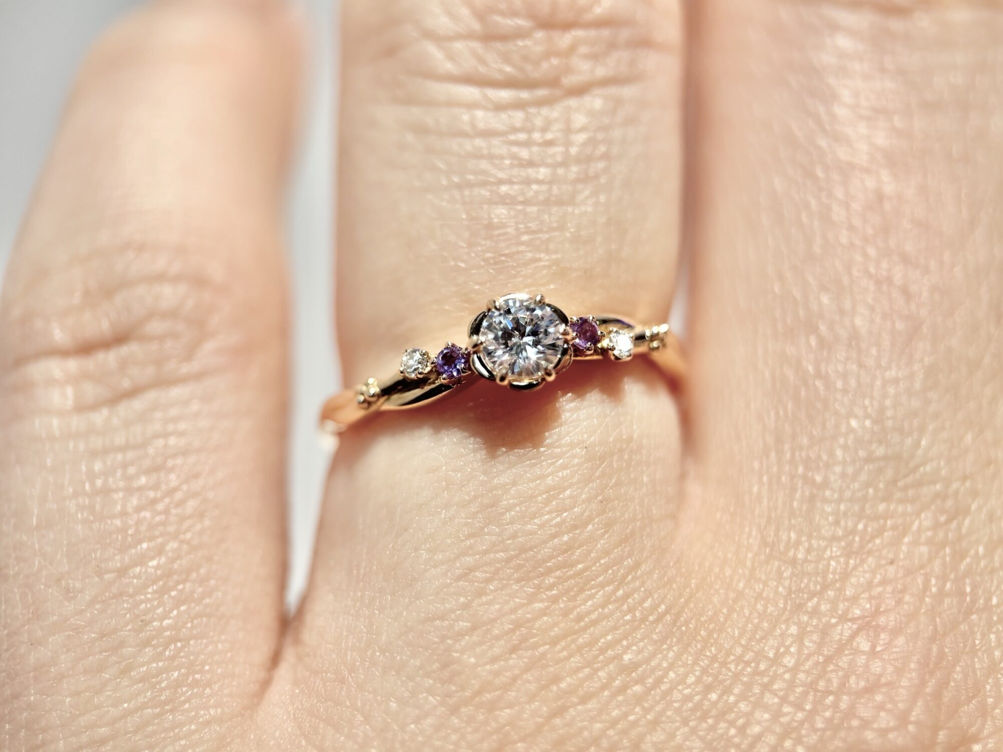 サイドのアメジストはダイヤモンドへの変更も可能✨