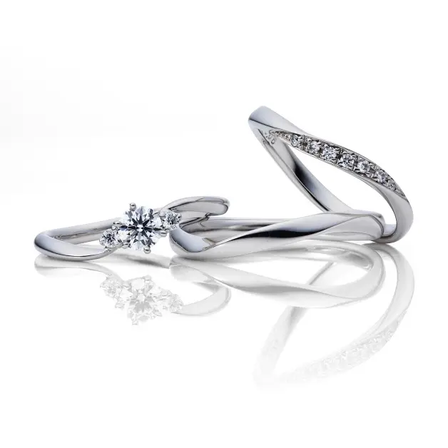 ひときわすらりと長く見せる、正統派のエンゲージリング。
