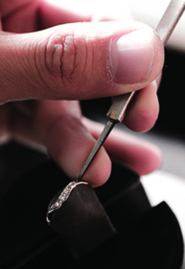 素材を選び、形を整え、ダイヤモンドを留め、刻印を入れる。