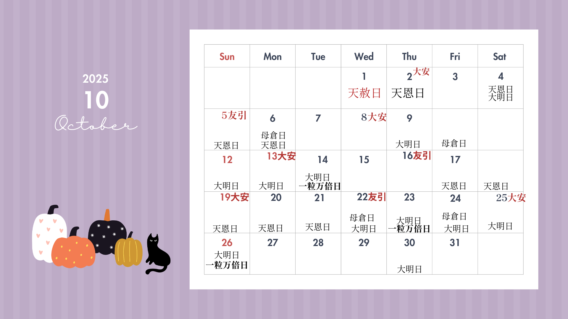 10月5日 友引+天恩日