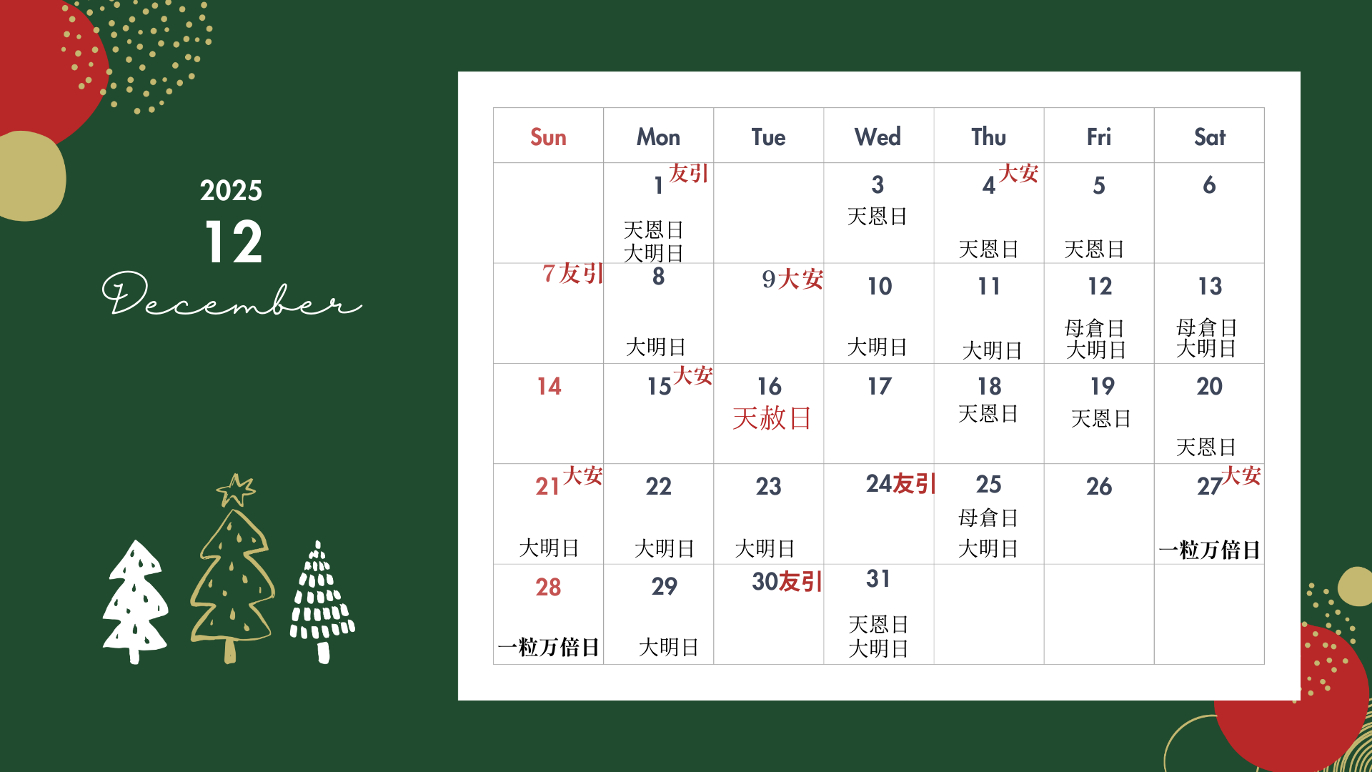 12月18日 友引+天恩日