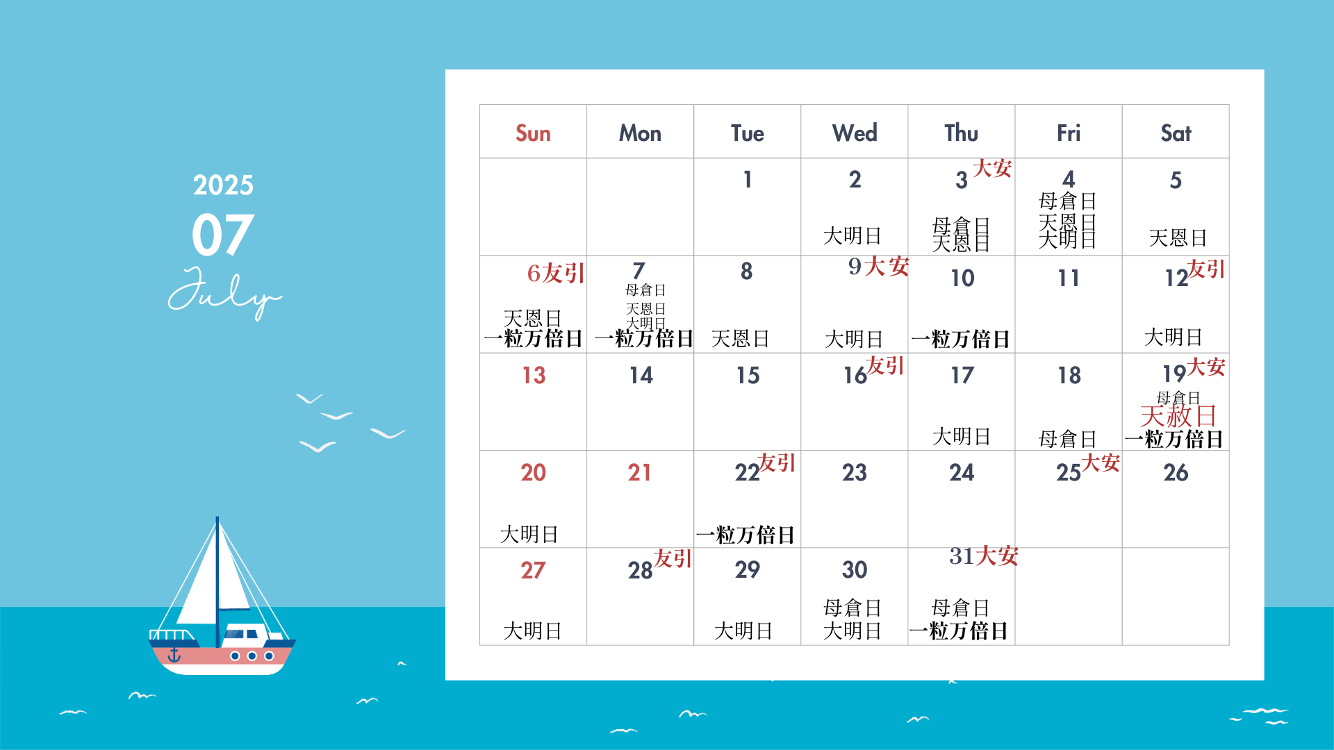 7月12日 友引+大明日