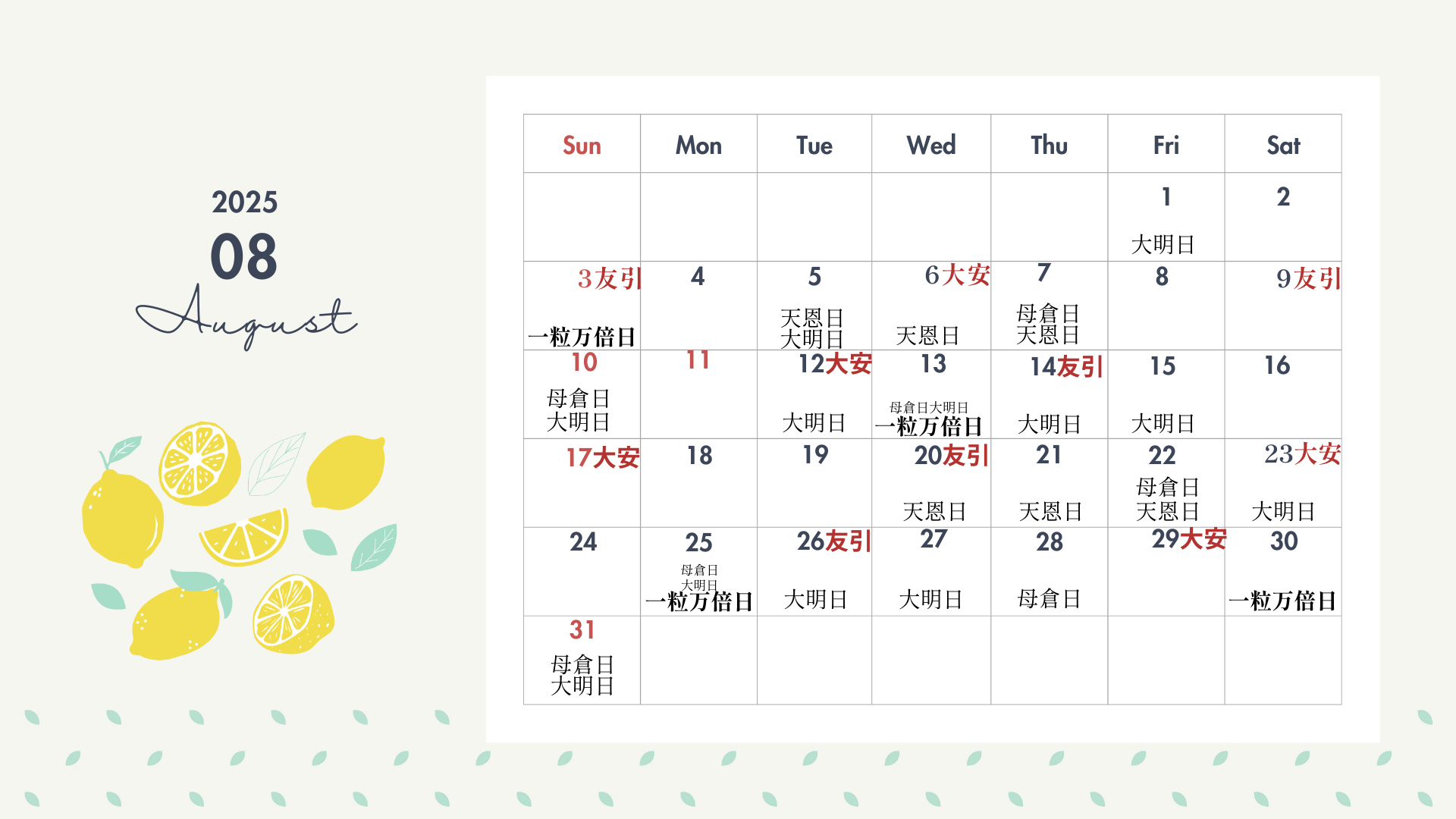 8月20日 友引+天恩日