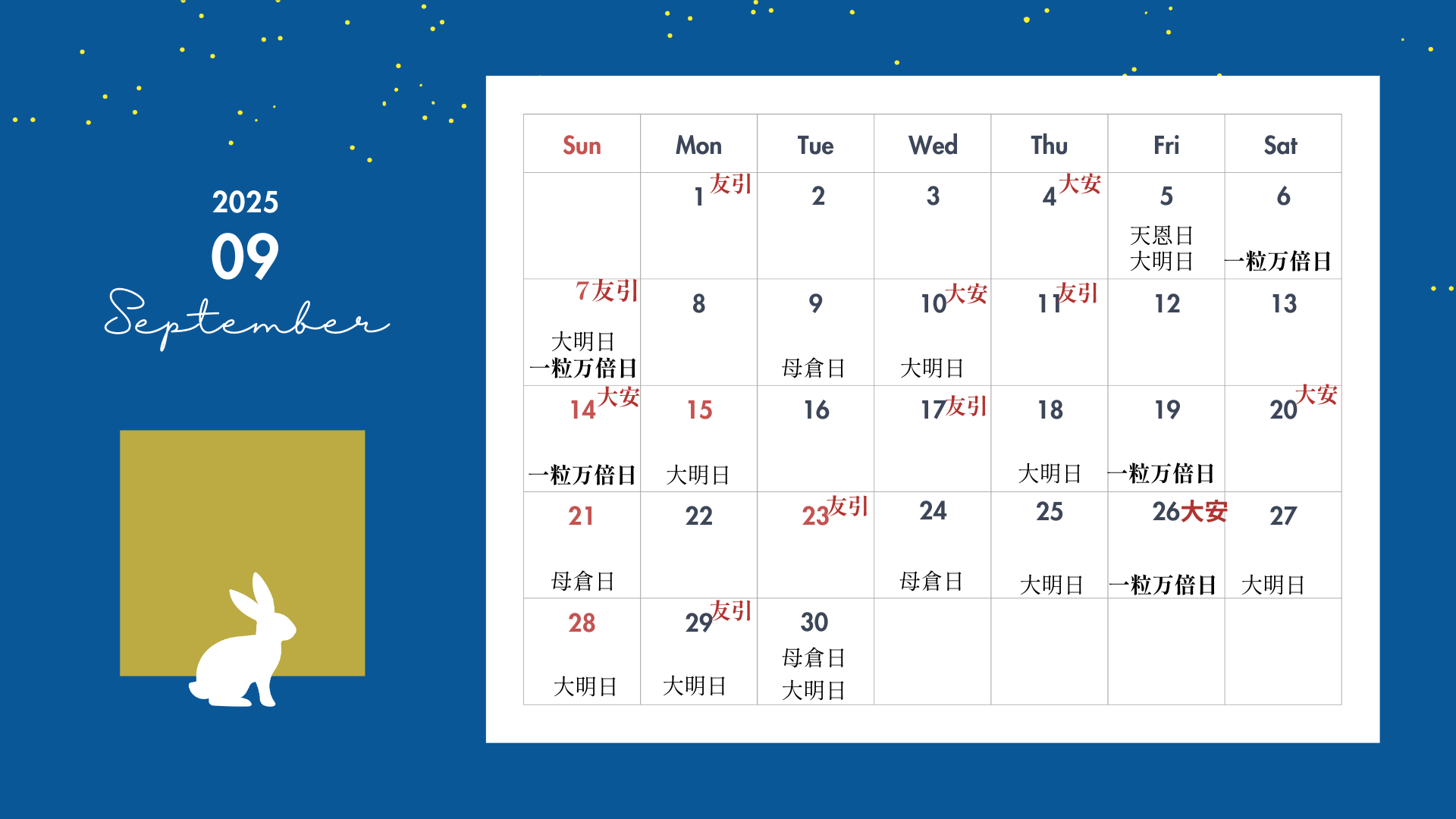 9月26日 大安+一粒万倍日