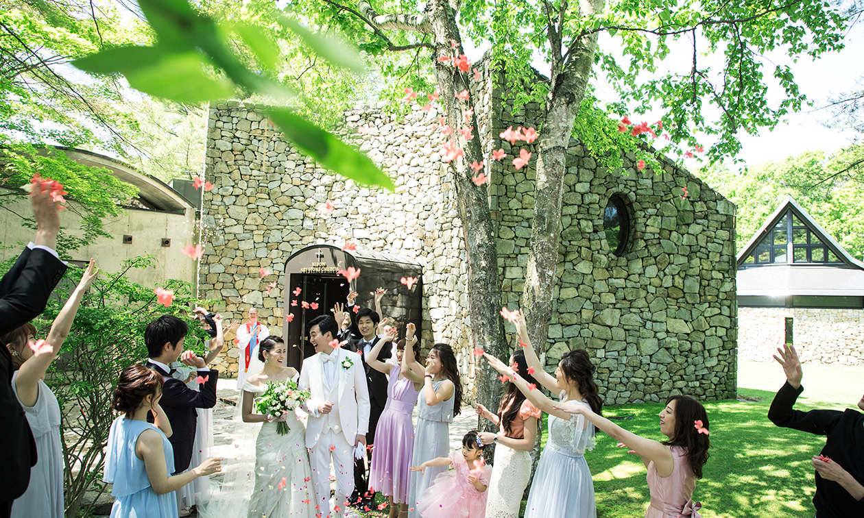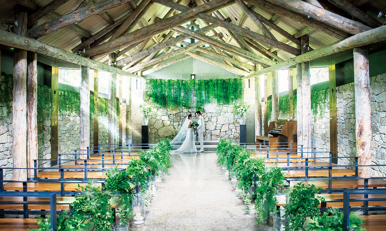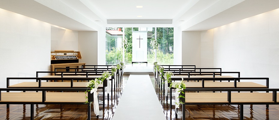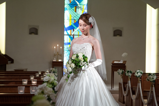 チャペル挙式には真っ白な壁が美しいチャペルと