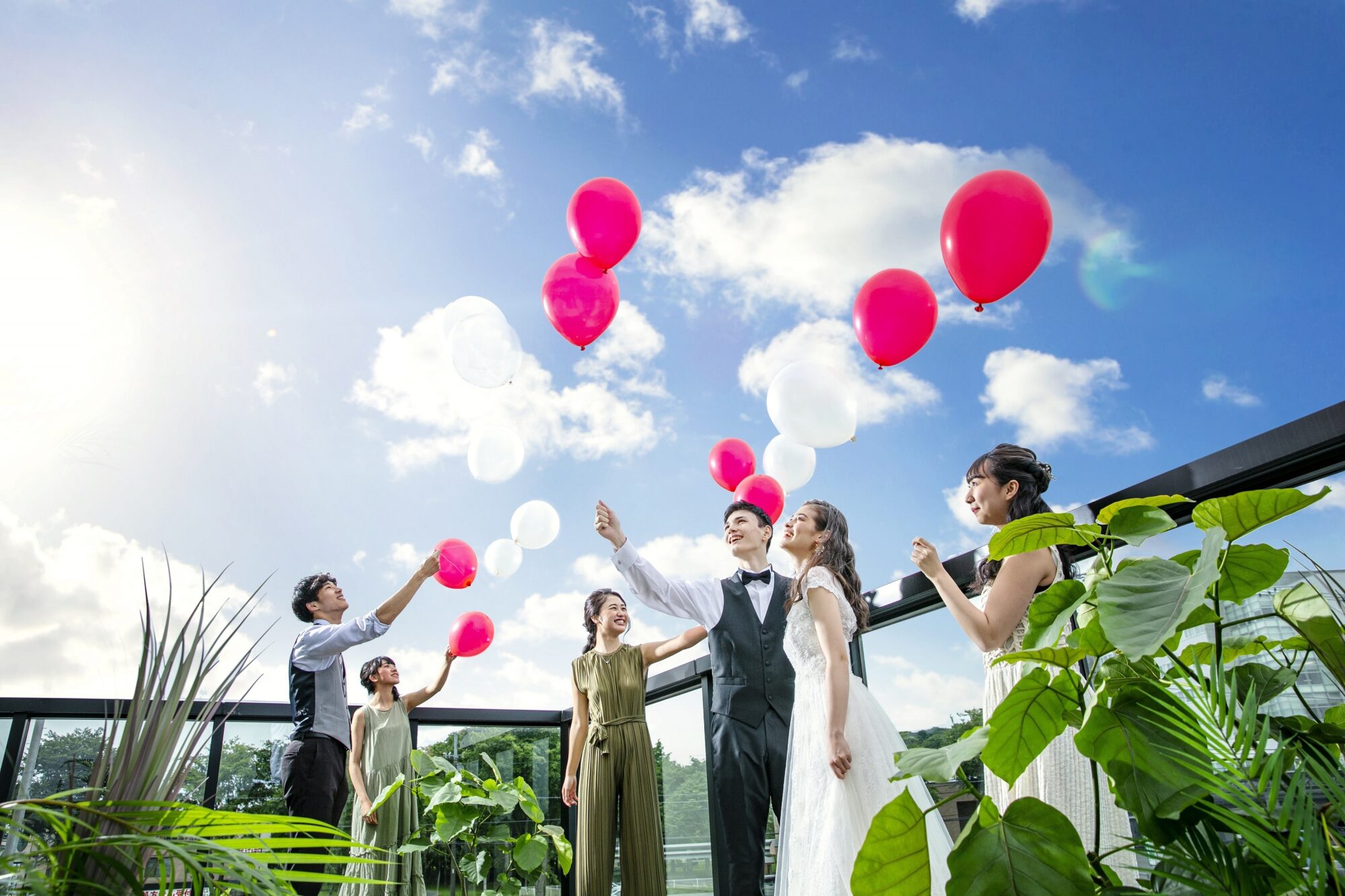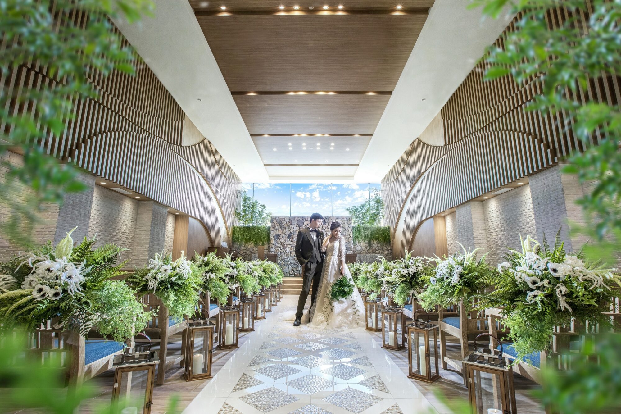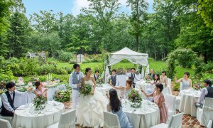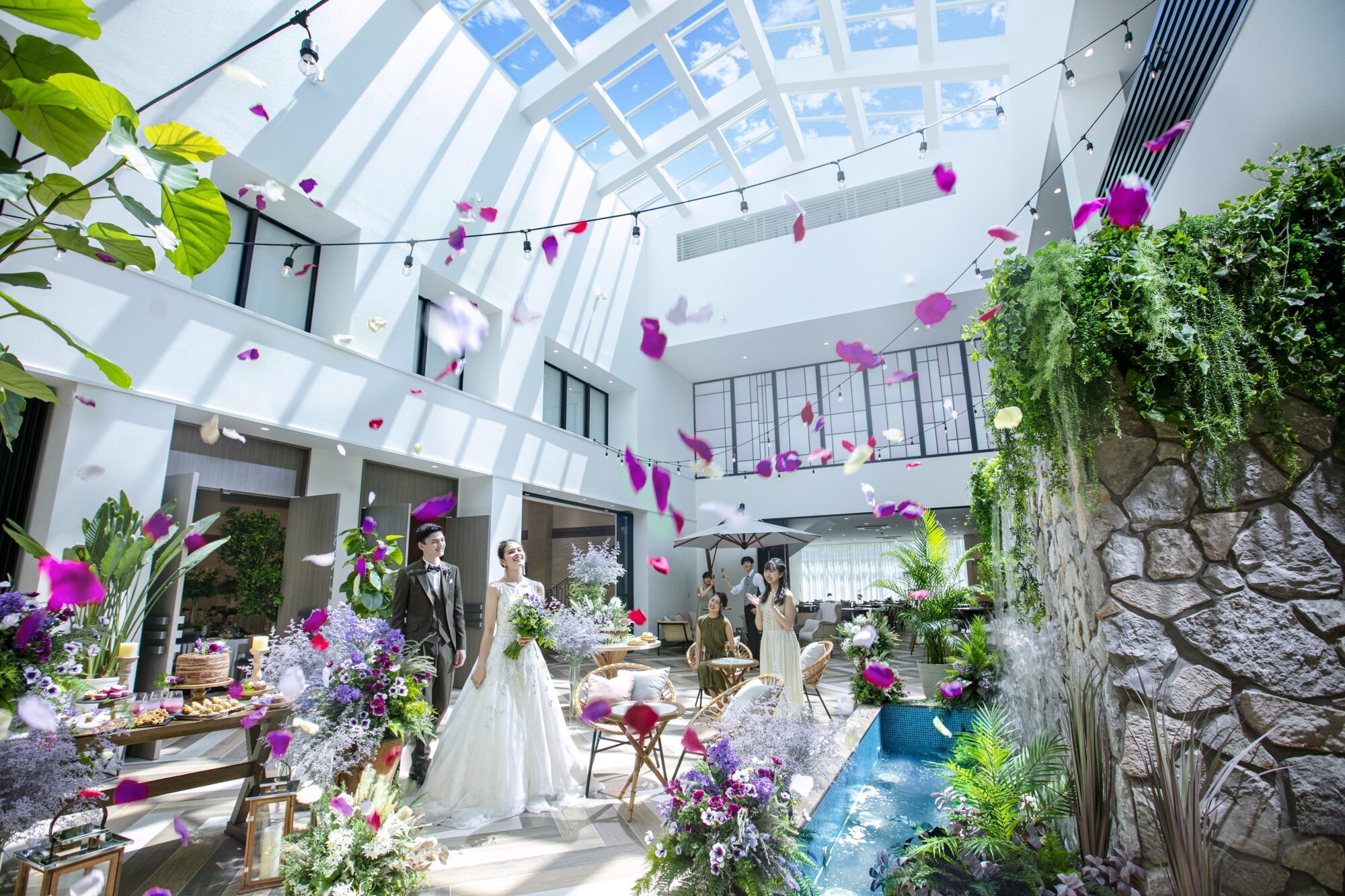 解放感のある綺麗なガーデンチャペルであげる挙式