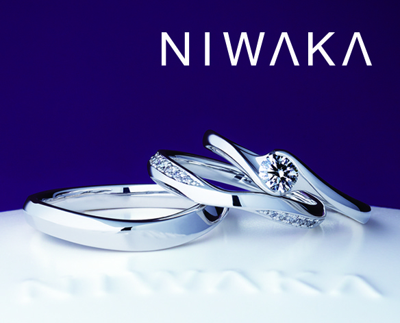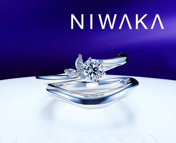 月光に彩られたふたりの姿と、静かに輝く未来を重ね合わせて上品に表現した婚約指輪。年齢を重ねても甘くなりすぎないマーキスカットのダイアモンドが特徴です。NIWAKAダイヤという特別なダイヤモンドを留めることができます。