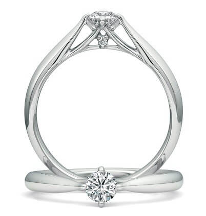 リングアームがそのまま爪につながるすっきりと洗練されたデザイン。石座を高くすることでダイヤモンドが光をたっぷり取り込み輝きを放ちます。