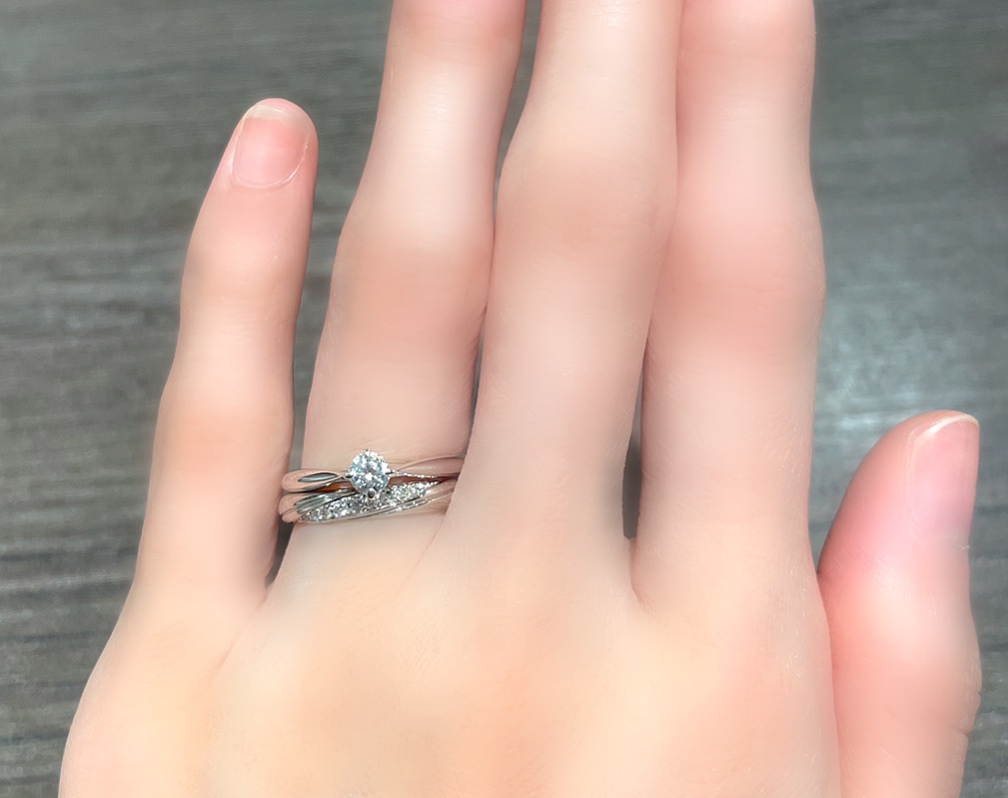 高さをだすことで写真のように結婚指輪と重ねて着けても指輪同士がぶつかりません。