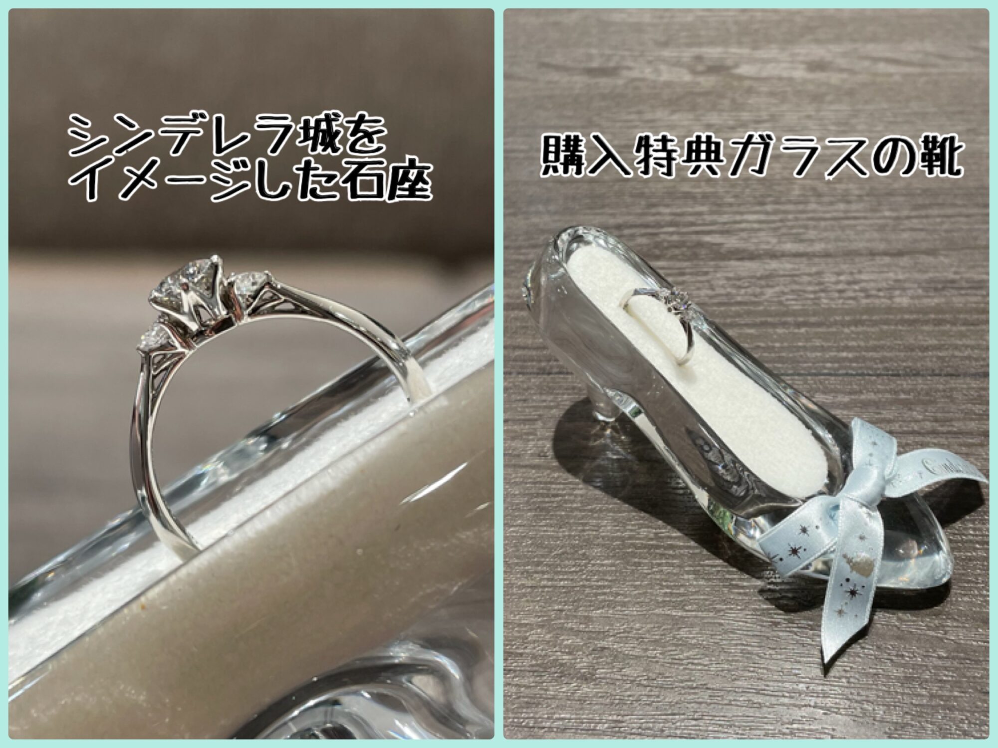 横から見たときはシンデレラ城をイメージ。ガラスの靴が購入特典としてついてくるのでロマンティックなプロポーズ間違いなしです。