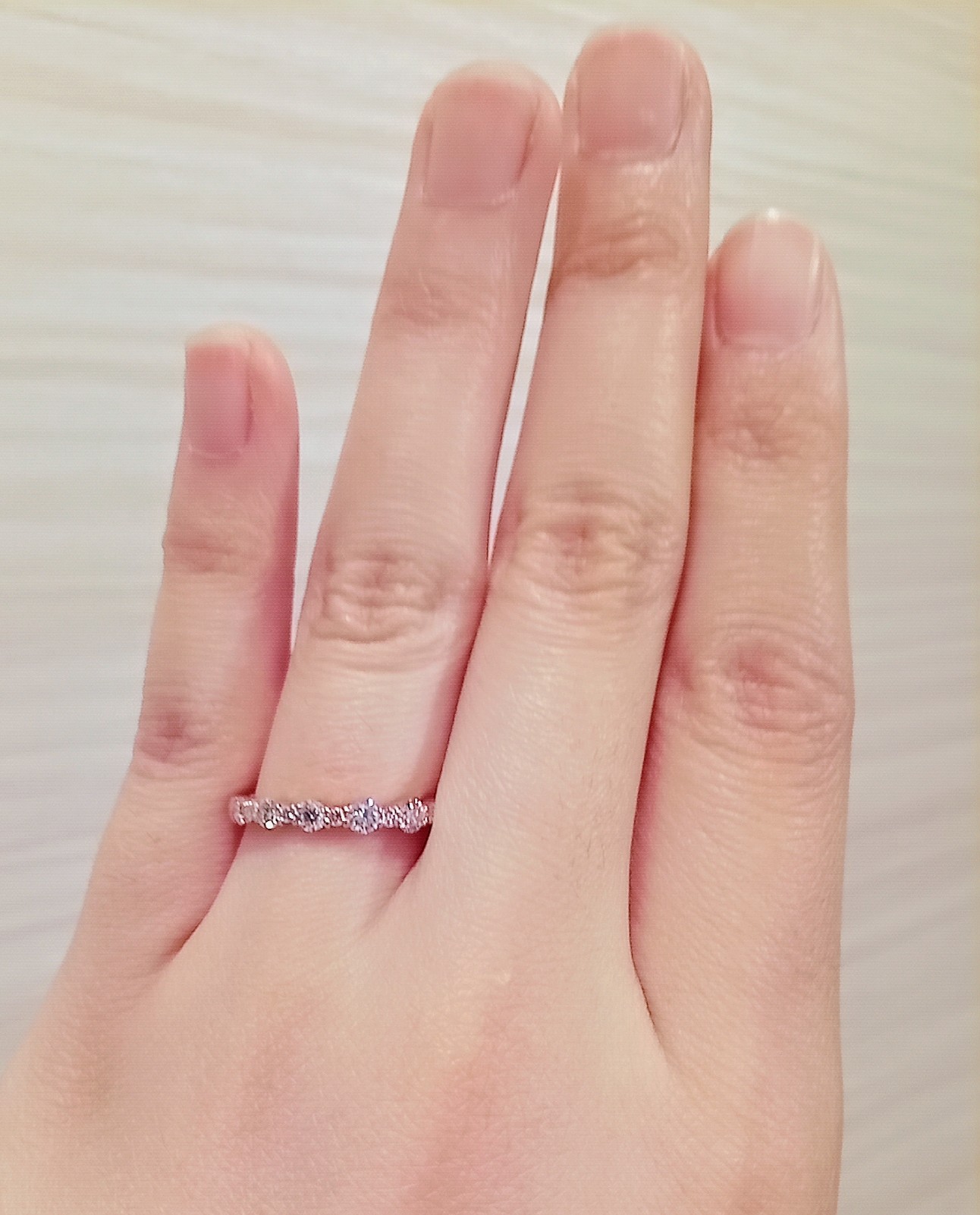細いエタニティリングを数本重ね付けしたり、