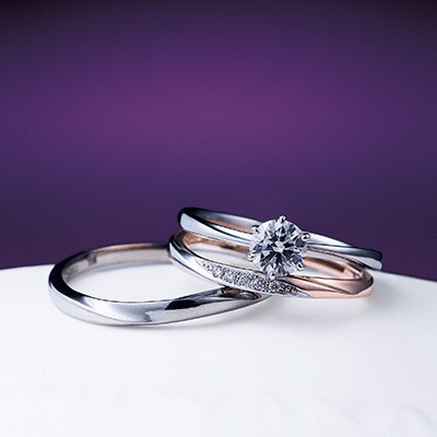 『婚約指輪と結婚指輪の重ね付けを前提としてデザインされたリング』