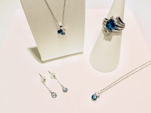 最近ではブルートパーズを使ったジュエリーを多く目にするので