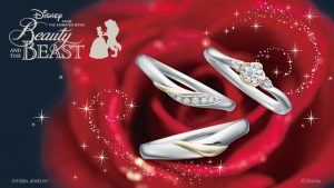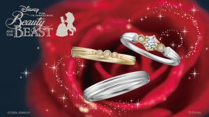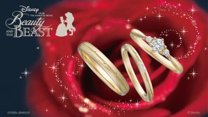エンゲージリングは、薔薇を閉じ込めたガラスドームを再現。