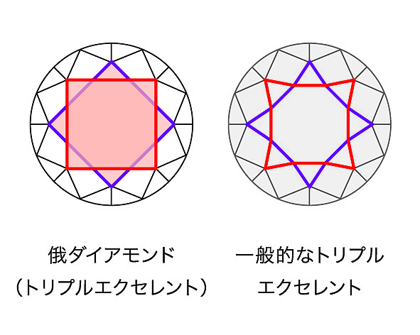一般的な「トリプルエクセレント」のダイヤモンドと比較して、