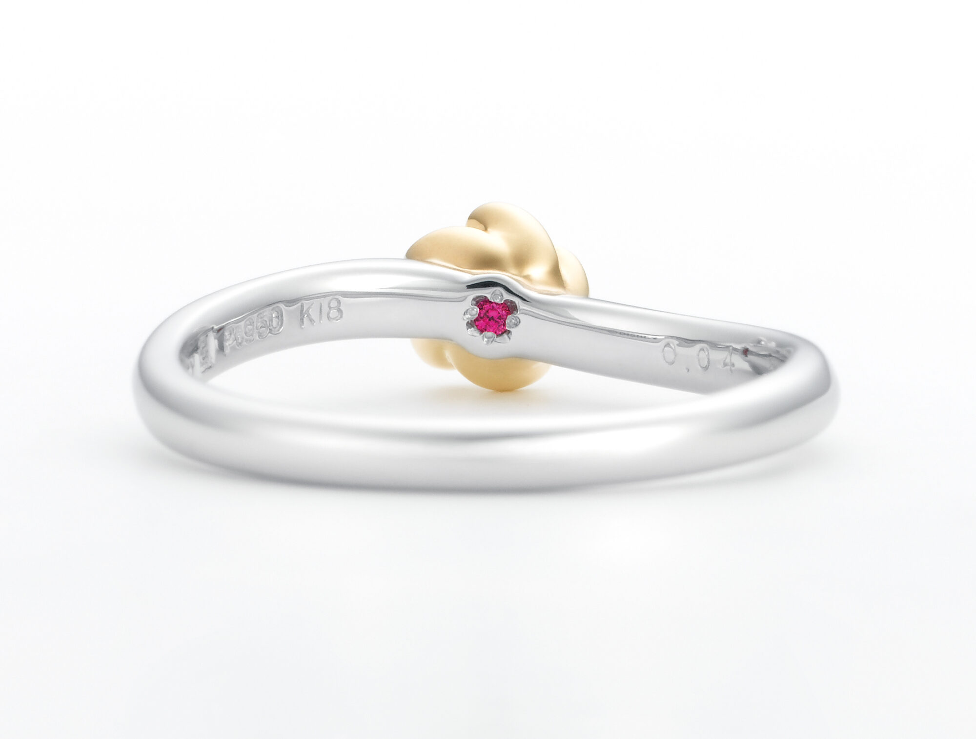 ダイヤを留める爪で薔薇の花びらが折り重なる姿を表現しており、