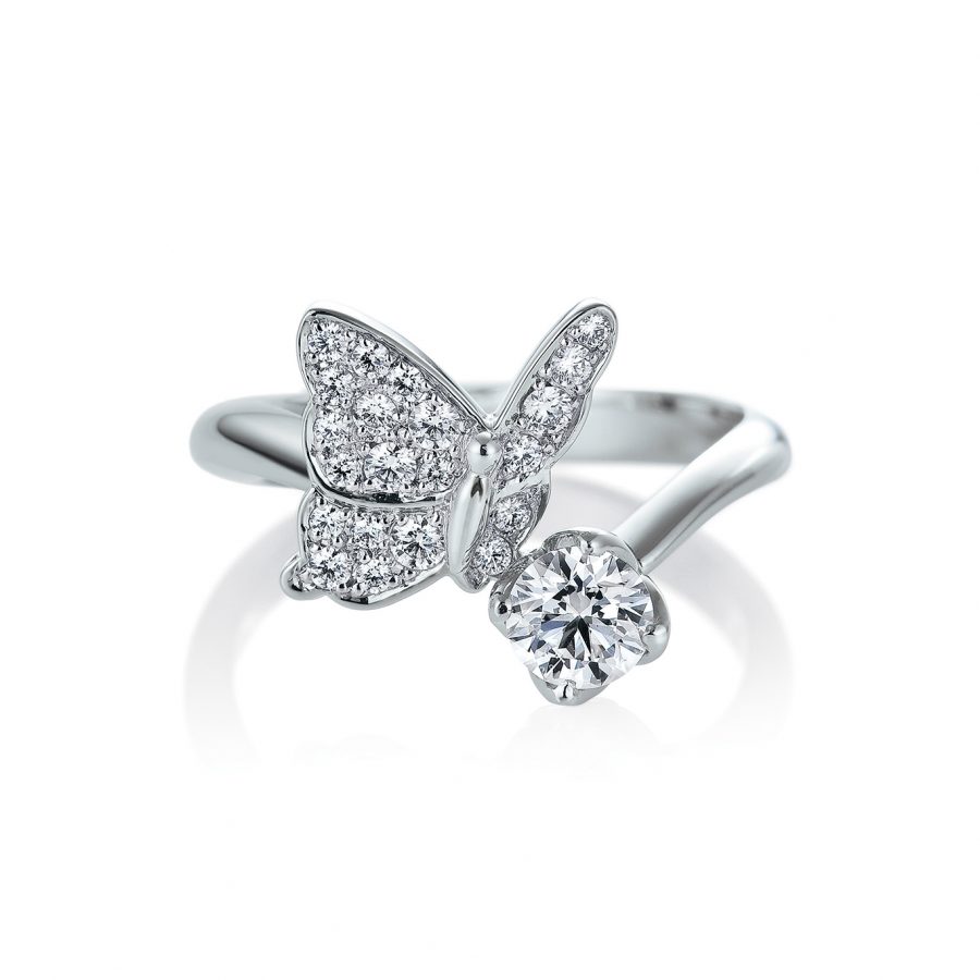 薬指に蝶がとまっているようなデザインは存在感抜群✨