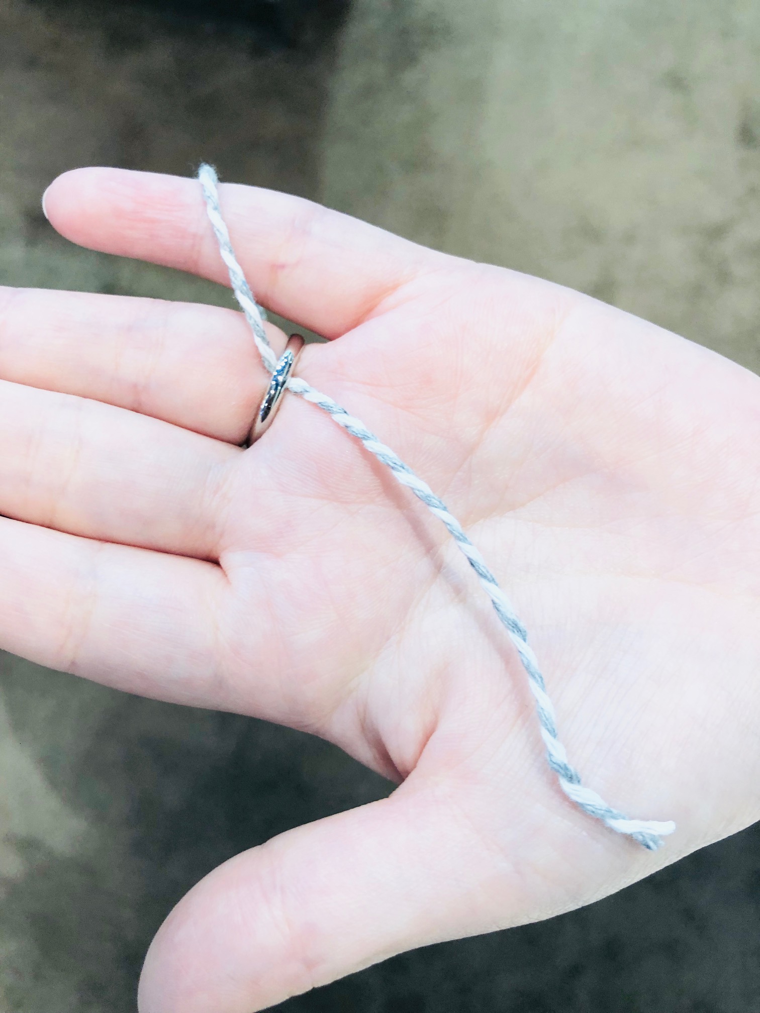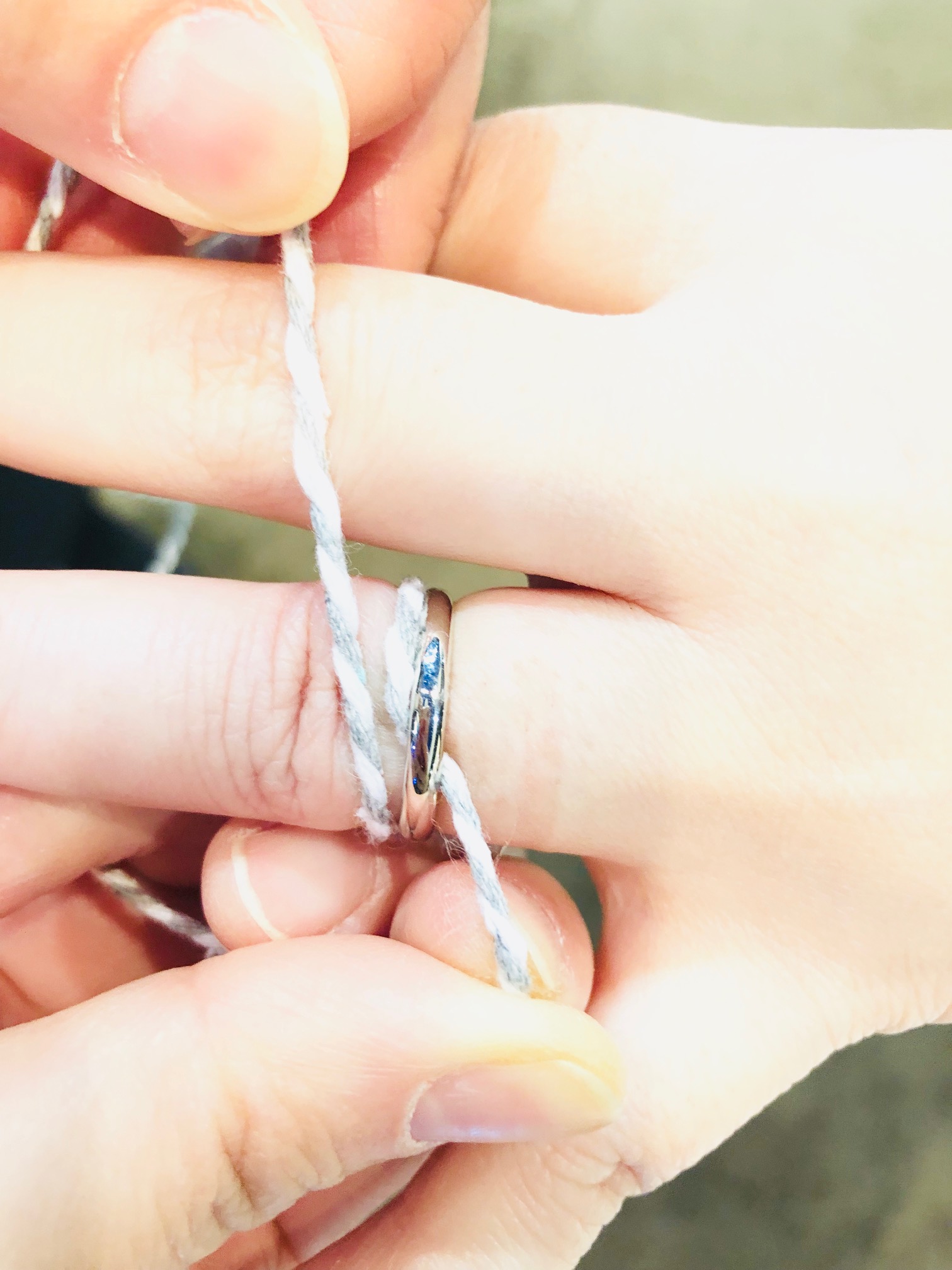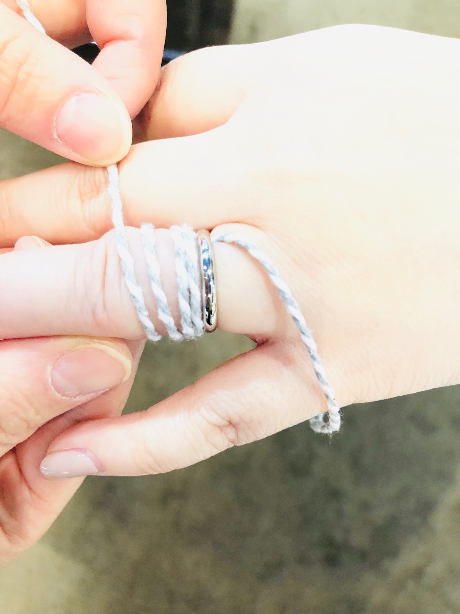 細い糸(タコ糸)を指輪に通し、指先に向かって残りの糸を巻いていきます。