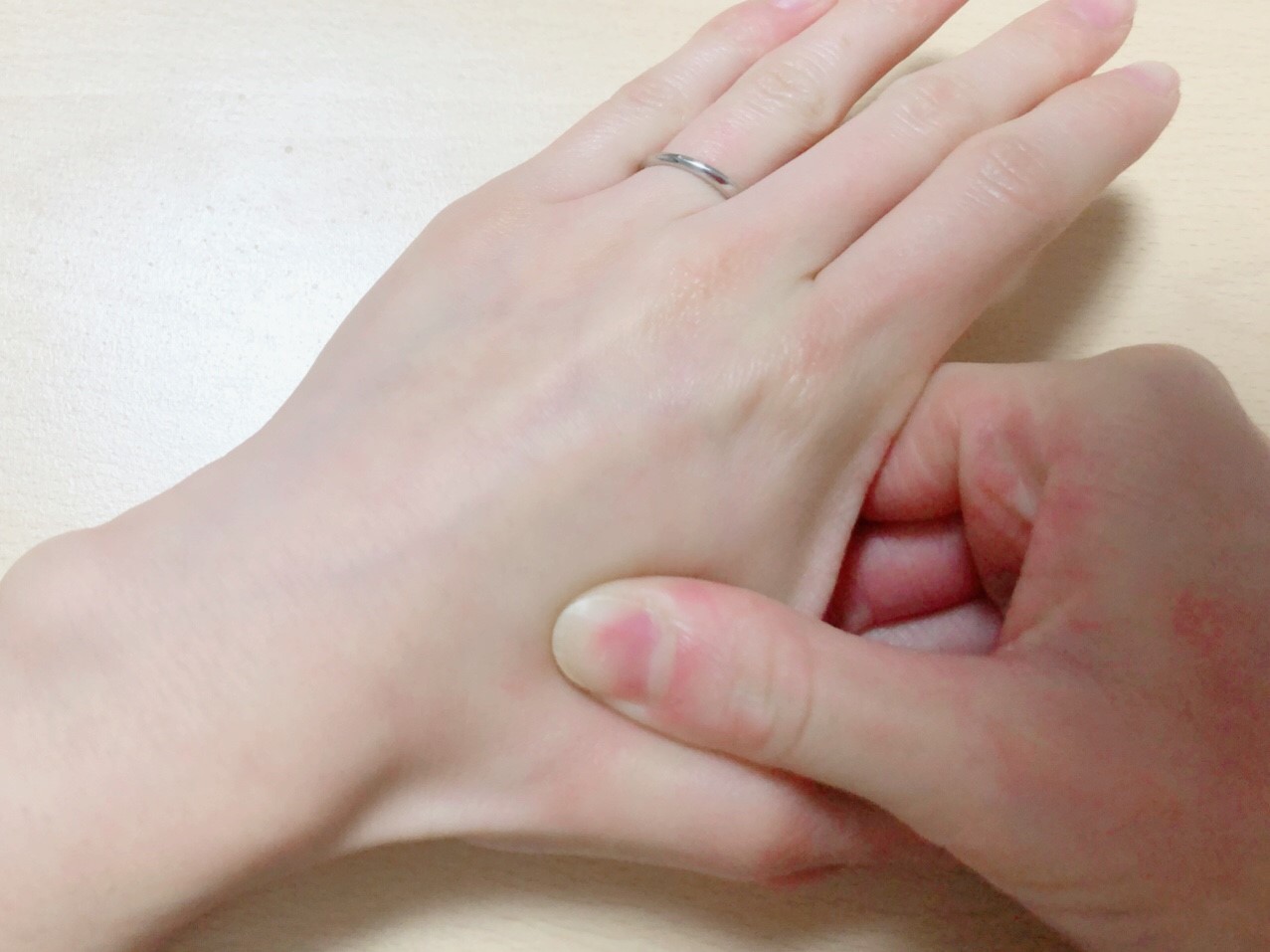 時間をかけすぎると圧迫された指が痛みだすので手早く行ってください。