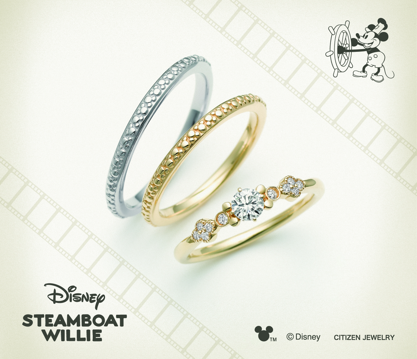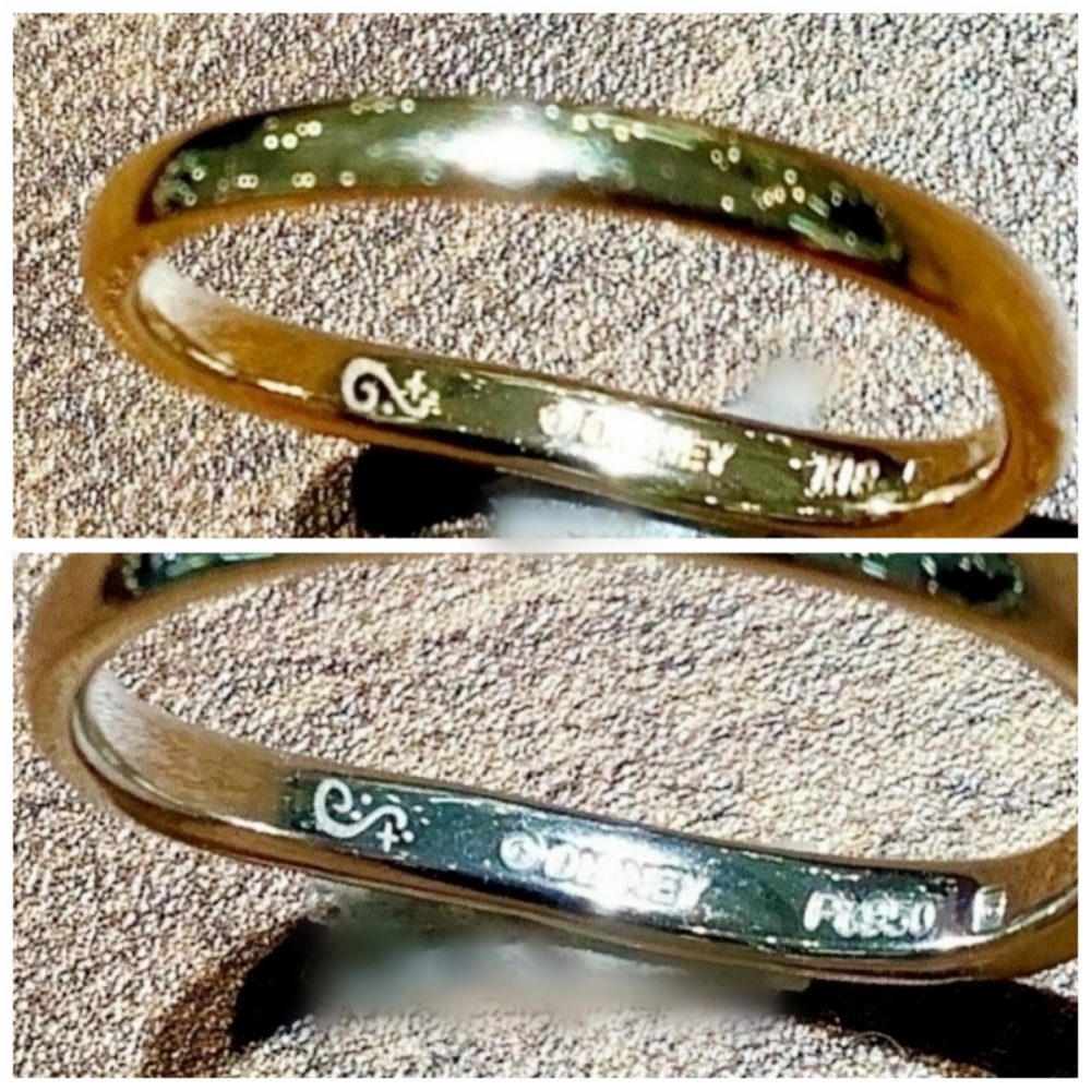 婚約指輪はセンターストーンの両サイドにさり気なく隠されたミッキーが。