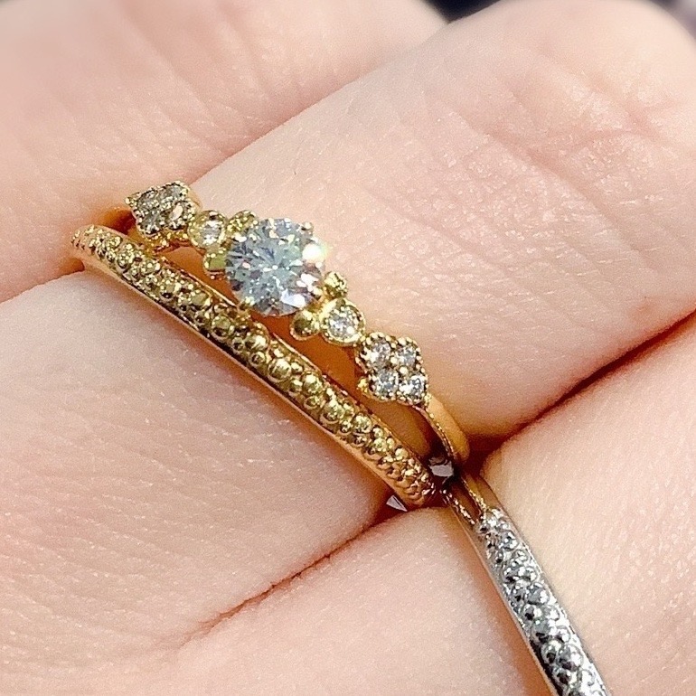 どちらも王道のストレートラインなので、手持ちの指輪ともぴったり重ね着けできます。