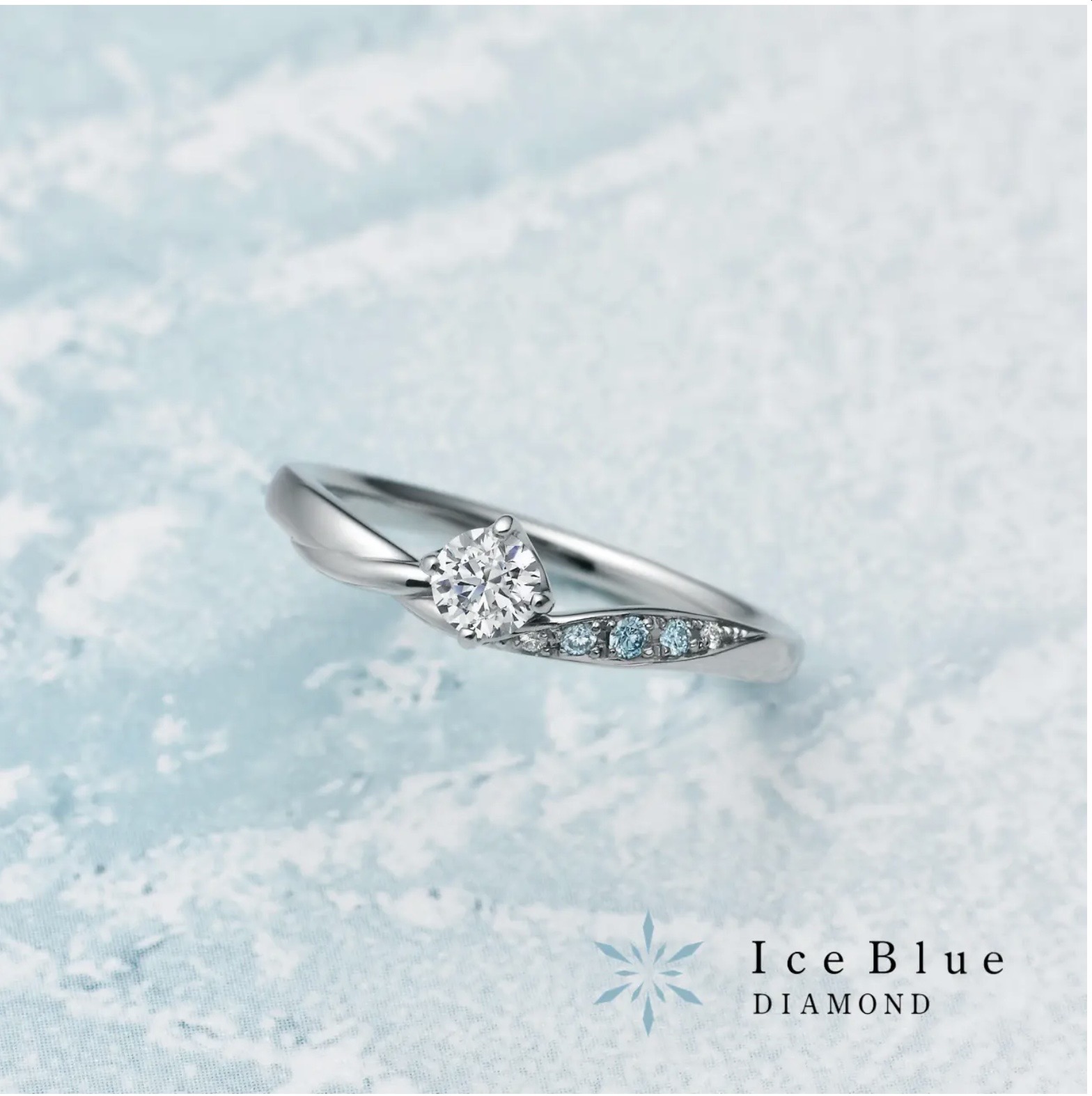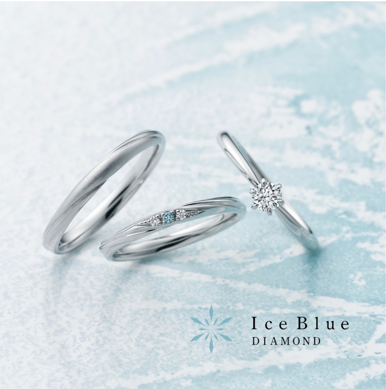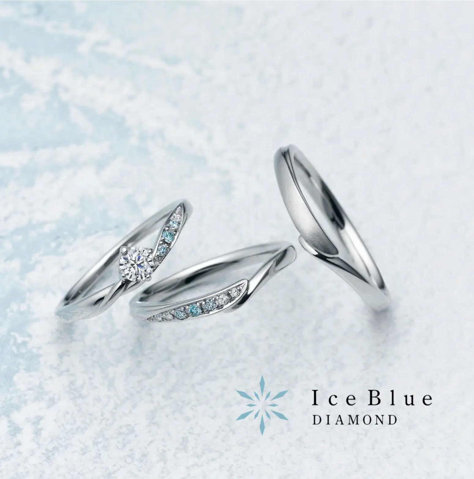 アイスブルーダイヤモンドは、婚約指輪も結婚指輪もグラデーションになっており幻想的な雪景色をイメージ。