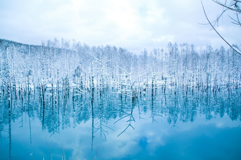 水面が鮮やかなコバルトブルーの不思議な池です!
